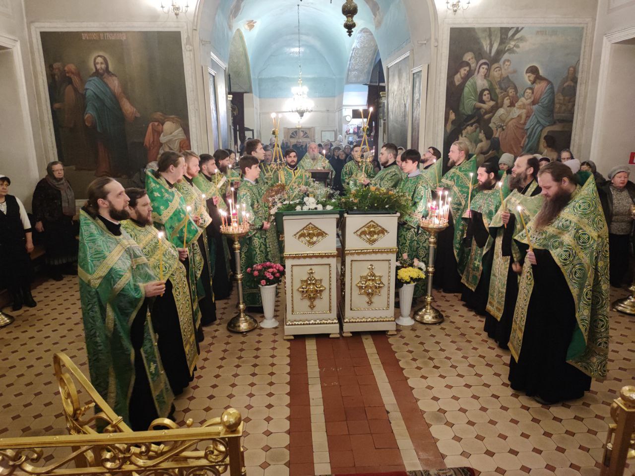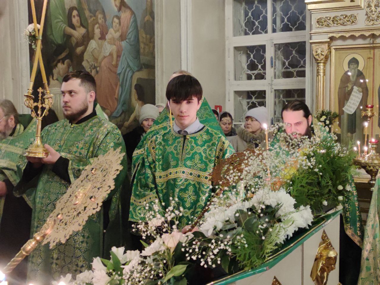 За богослужением богомольцы возносили сугубые молитвы о упокоении почившего в 2011 году викария Калужской епархии архиепископа Людиновского Георгия, которому 26 января 2024 года исполнилось бы 90 лет со дня рождения.