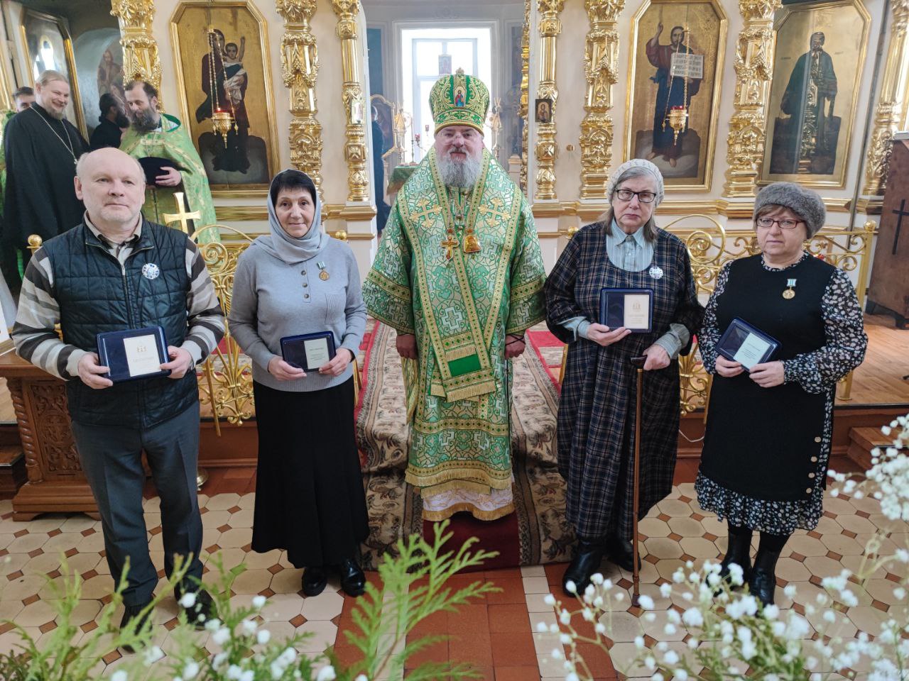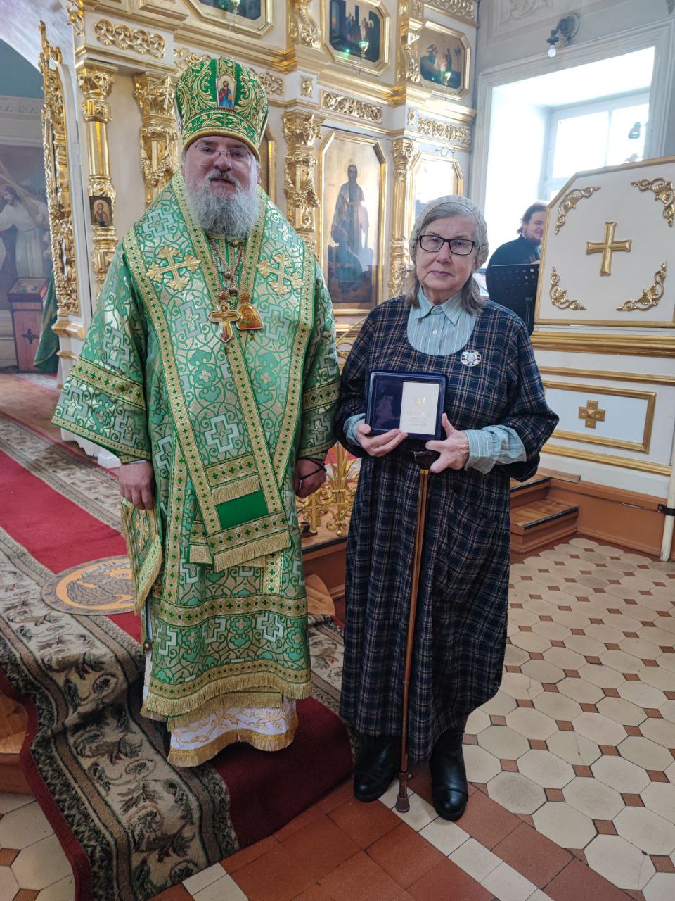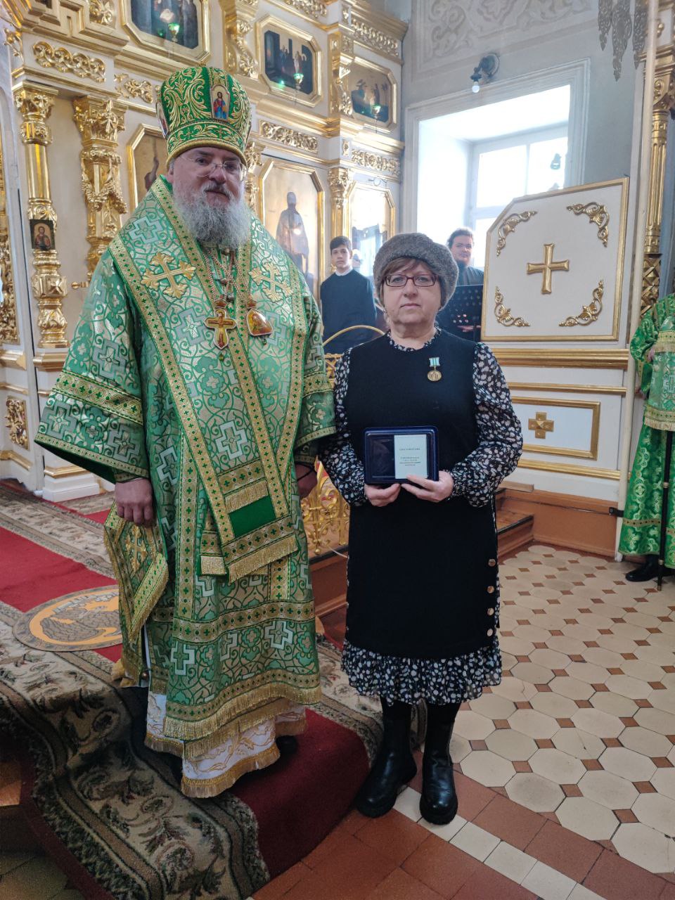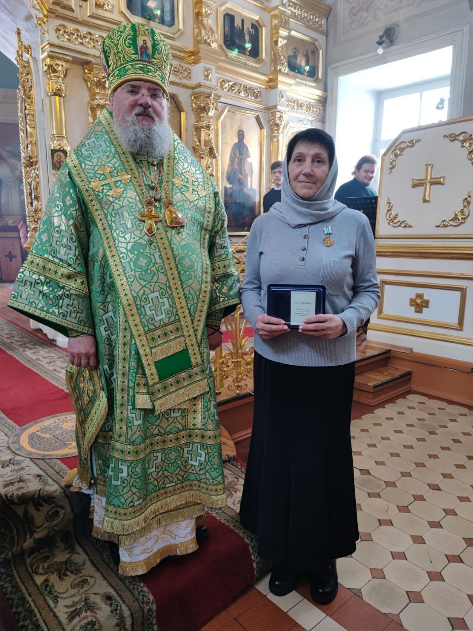 Во внимание к усердным трудам во славу Святой Церкви, по благословению Главы Калужской митрополии митрополита Калужского и Боровского Климента, епископ Никита вручил юбилейные медали  «10-летия образования Калужской митрополии» руководителю православного Духовно-просветительского центра «Возрождение» города Козельска Ирине Александровне Пановой и бухгалтеру православной Козельской гимназии Галине Ивановне Смирновой.