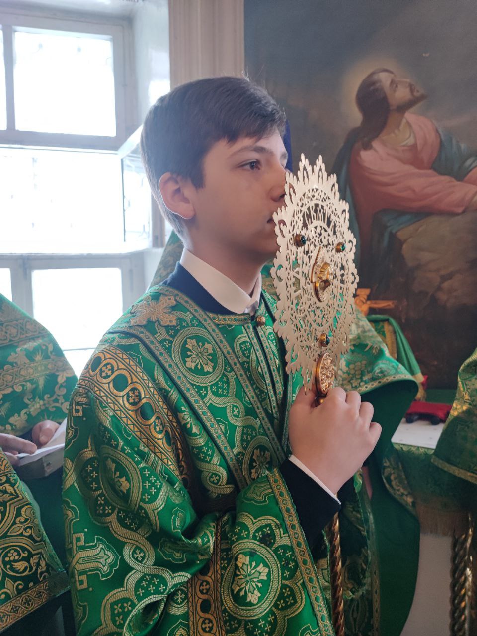За литургией были вознесены особые прошения и молитва о Святой Руси. По благословению Святейшего Патриарха Московского и всея Руси Кирилла эта сугубая молитва совершается во всех храмах Русской Православной Церкви за каждым богослужением.
