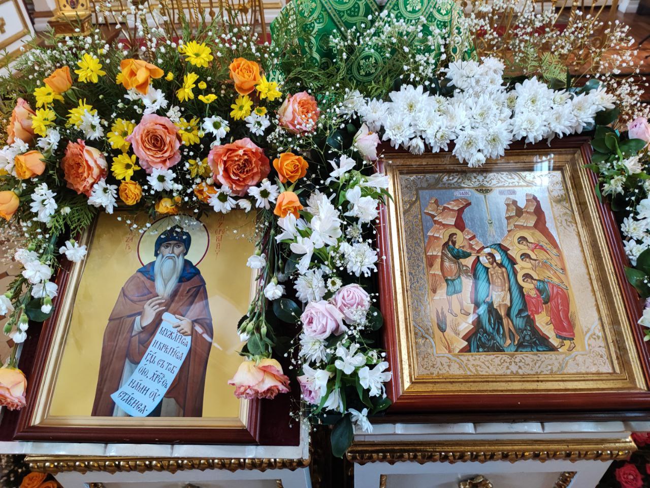 По отпусте литургии священнослужители совершили славление праздника Крещения Господня и преподобного Елеазара Анзерского, Козельского чудотворца (преподобный Елеазар родился и возрастал в богоспасаемом городе Козельске до своего удаления в Соловецкий монастырь).
