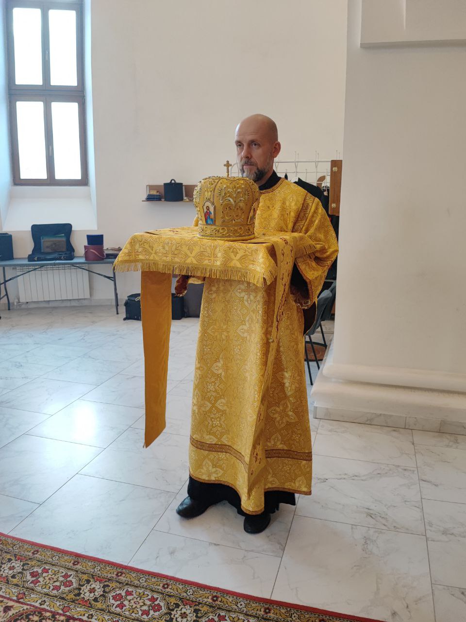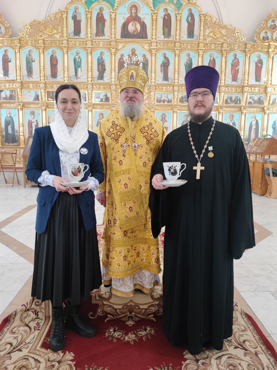 Архипастырь также поздравил отца Дионисия и его супругу матушку Анастасию с 17летием вступления в церковный брак и преподнес им памятные подарки.