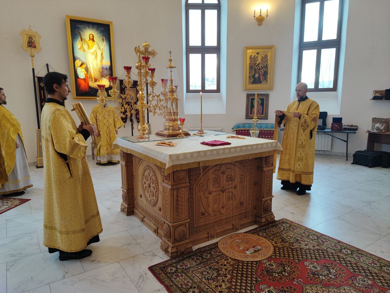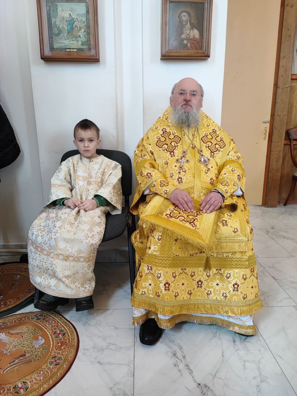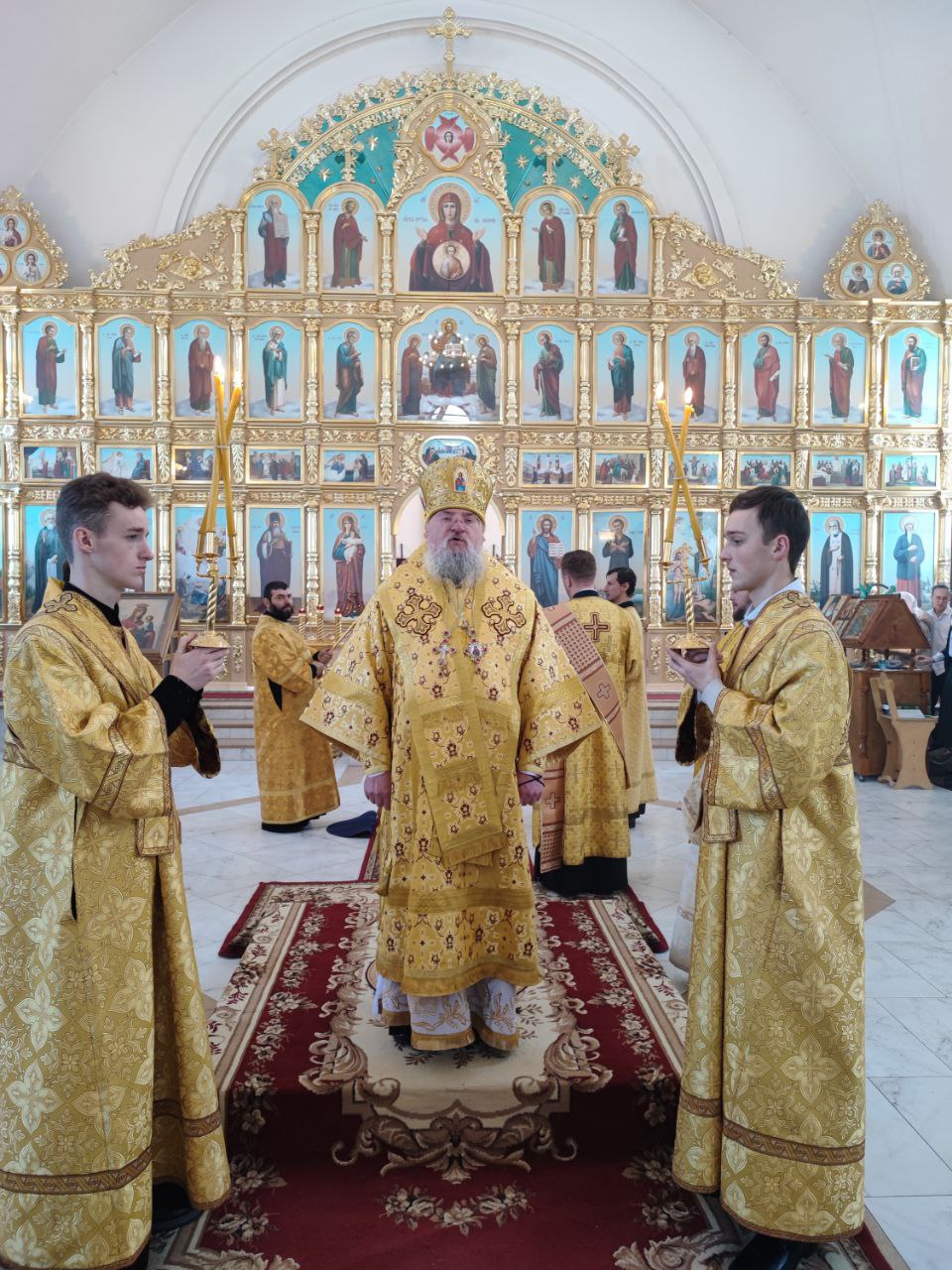 Преосвященному архипастырю сослужили: протоиерей Антоний Хатунцев, иерей Дионисий Куваев – настоятель храма и диакон Евгений Ковригин.