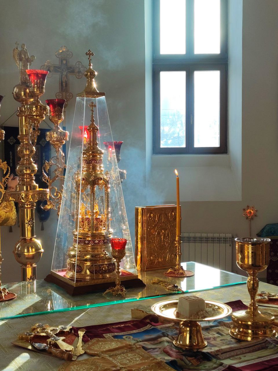 По отпусте литургии священнослужители совершили молебен святым новомученикам и исповедникам Русской Церкви, пострадавшим за веру Христову в годы гонений на Святую Церковь в XX столетии в стране нашей, а затем заупокойную литию по всем в годы гонений умученным и убиенным. Особо молились о новопреставленных погибших накануне в городе Лисичанске.