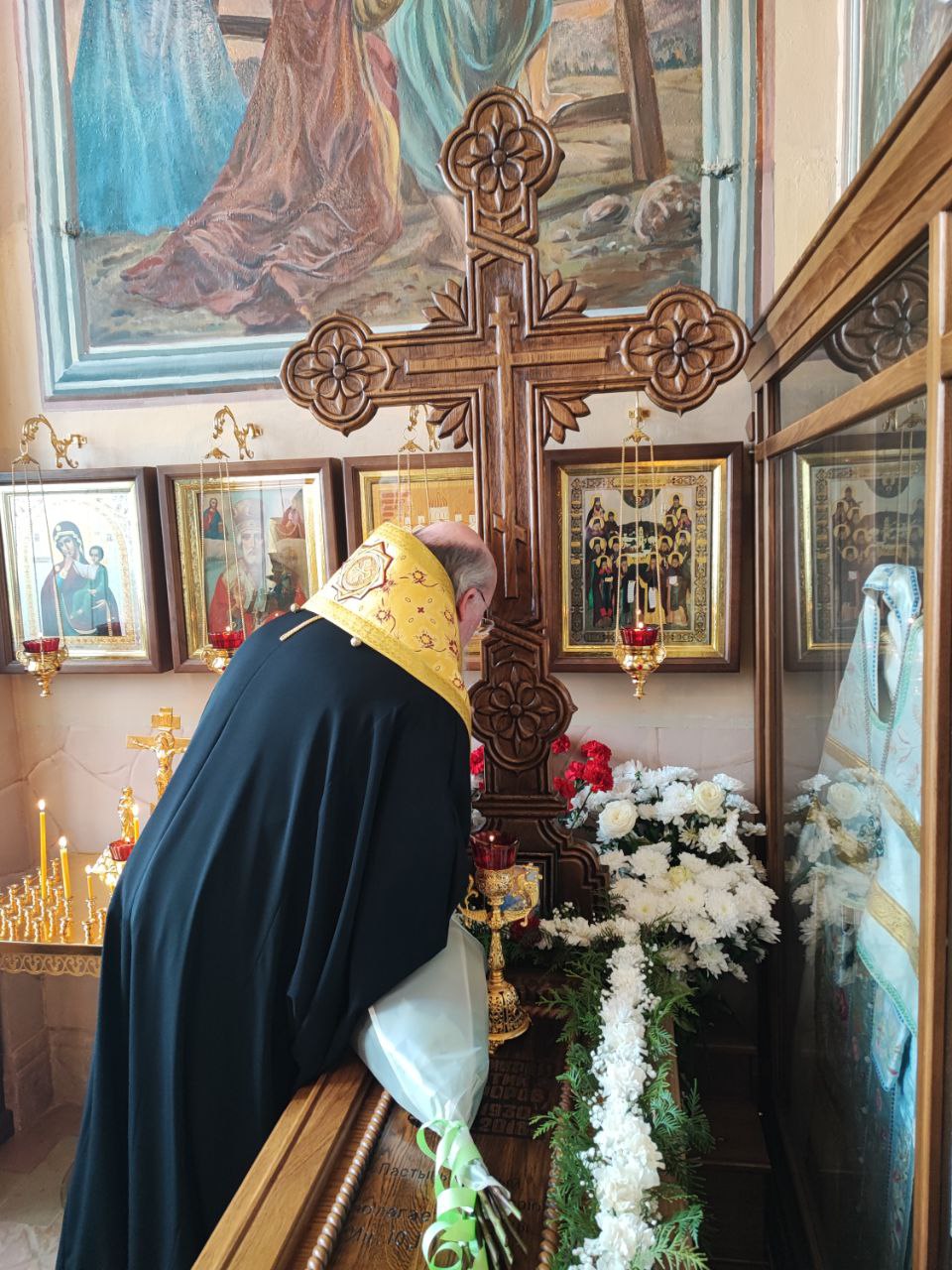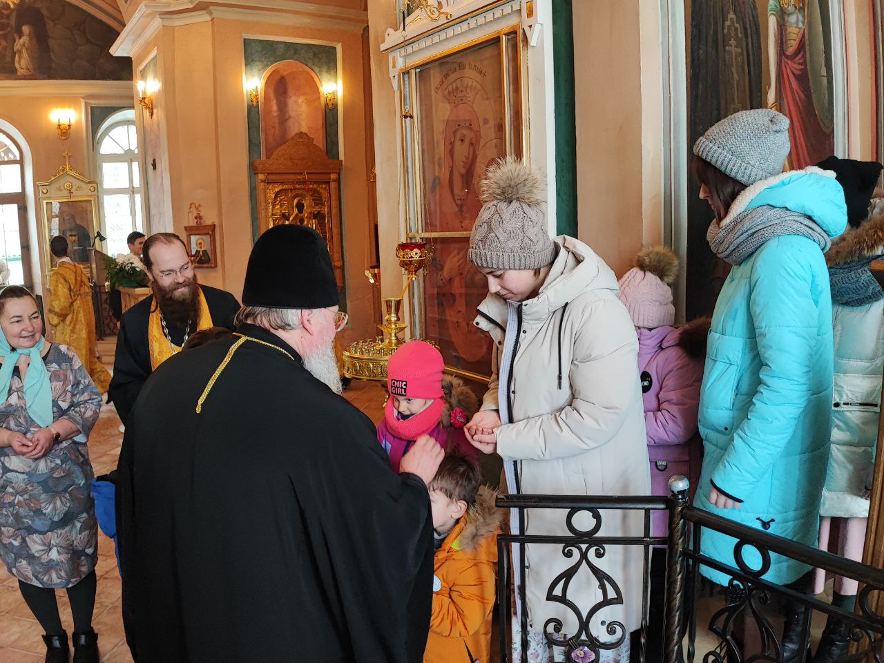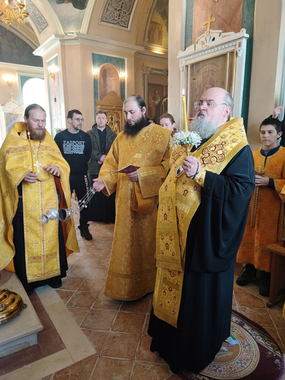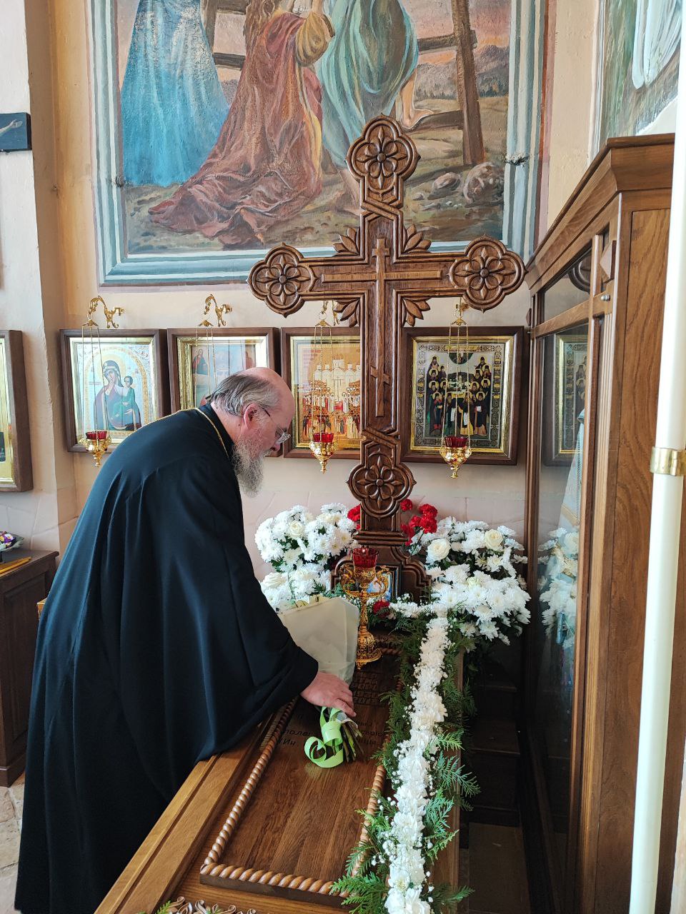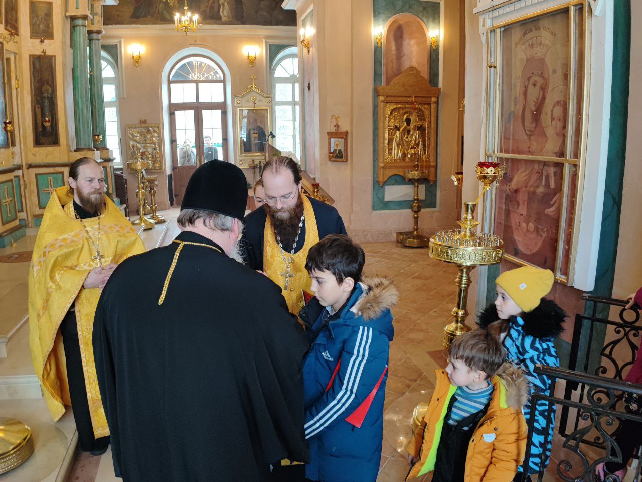 Затем настоятель прихода иерей Тихон Худяков рассказал архиерею о проделанных реставрационных работах старинных икон и работах по благоустройству храмовой территории.