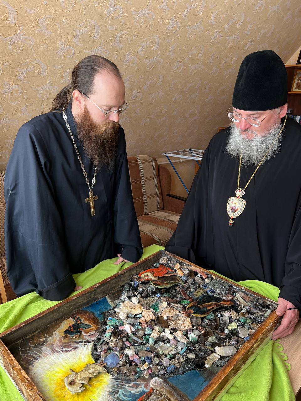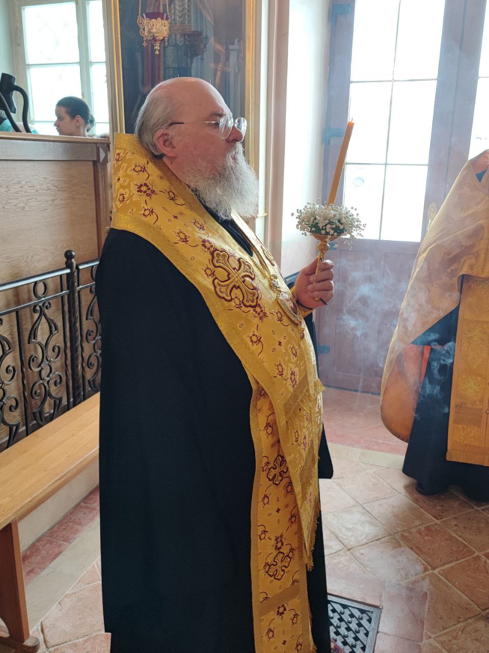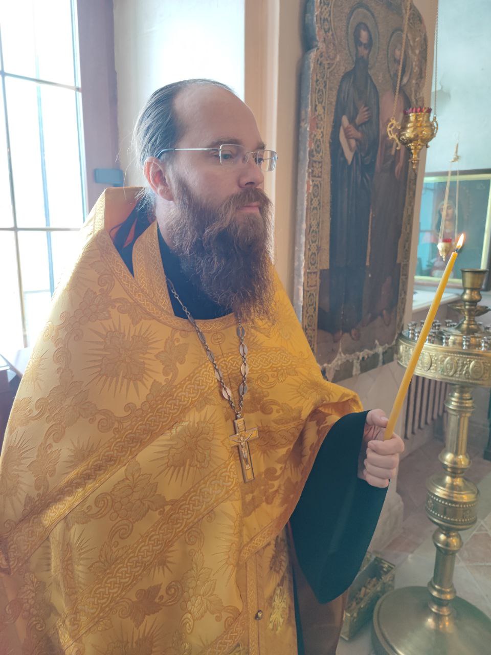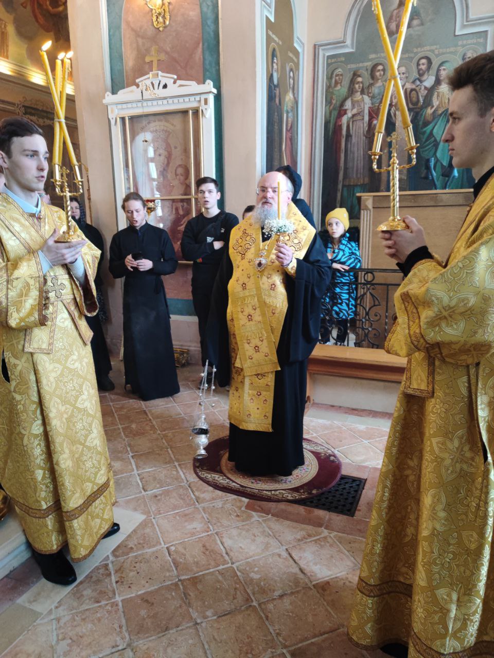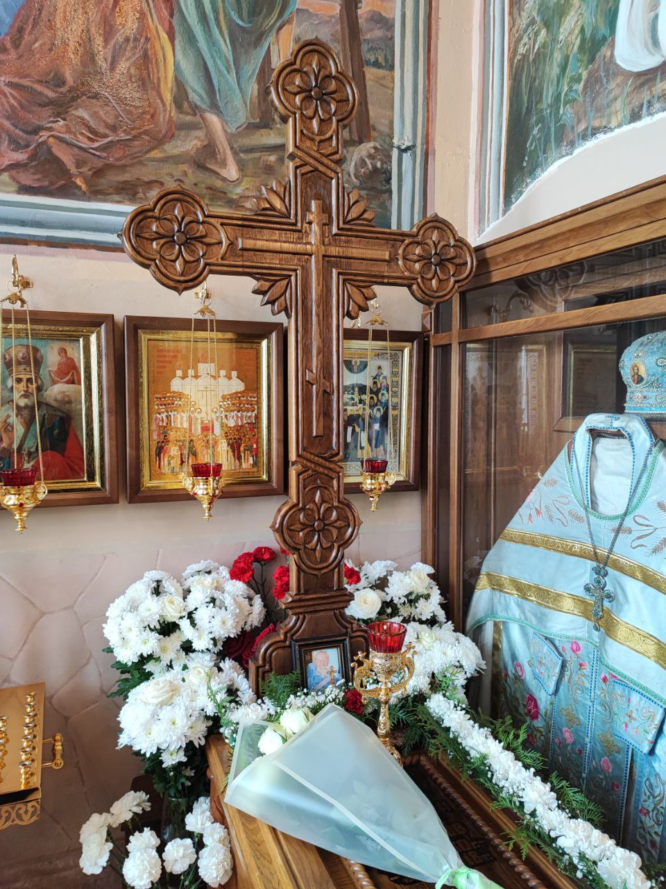 Затем настоятель прихода иерей Тихон Худяков рассказал архиерею о проделанных реставрационных работах старинных икон и работах по благоустройству храмовой территории.
