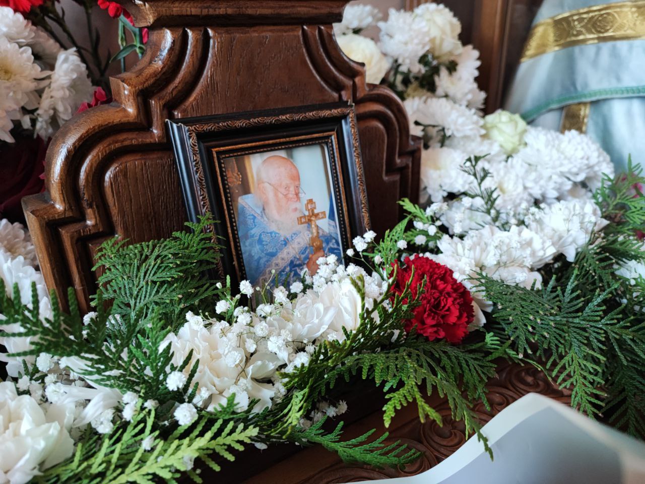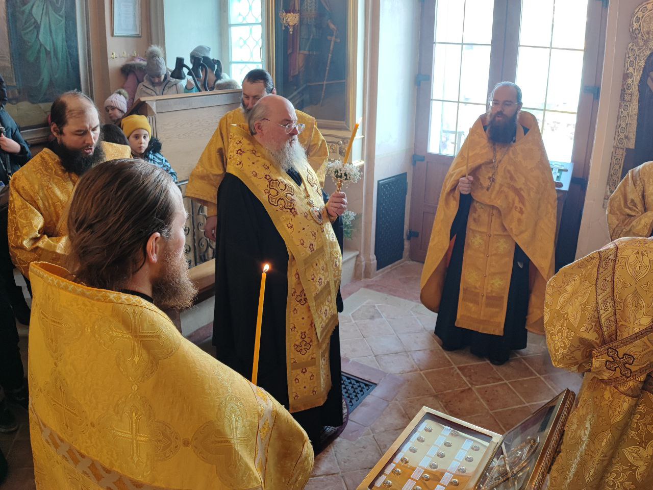 Архипастырь в сослужении иерея Тихона Худякова, иерея Симеона Худякова и диакона Валерия Волкова совершил панихиду по приснопоминаемому бывшему настоятелю храма Преображения Господня протоиерею Леонтию Никифорову, прослужившему на приходе без малого 55 лет и почившему шесть лет назад, 3 февраля 2018 года.