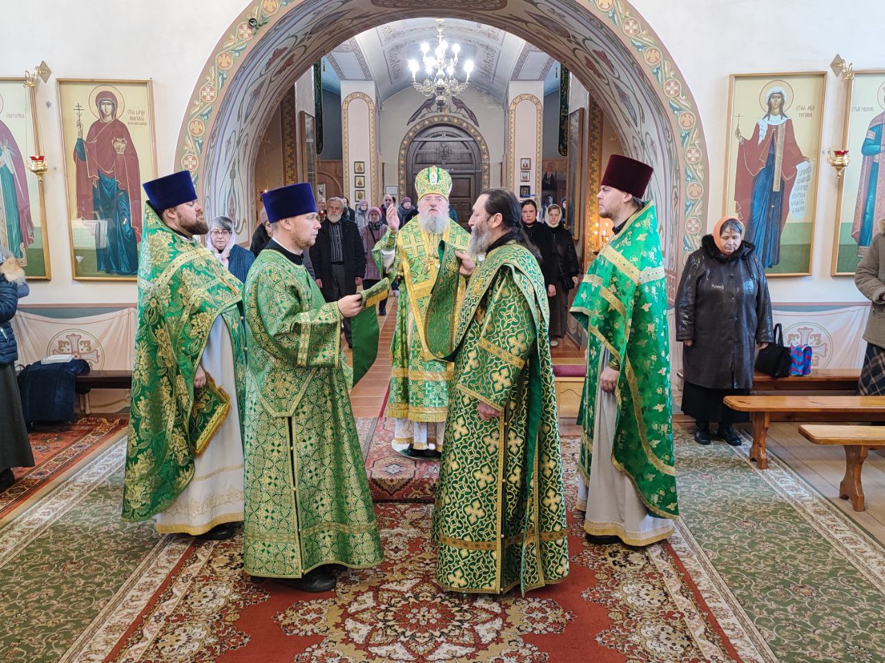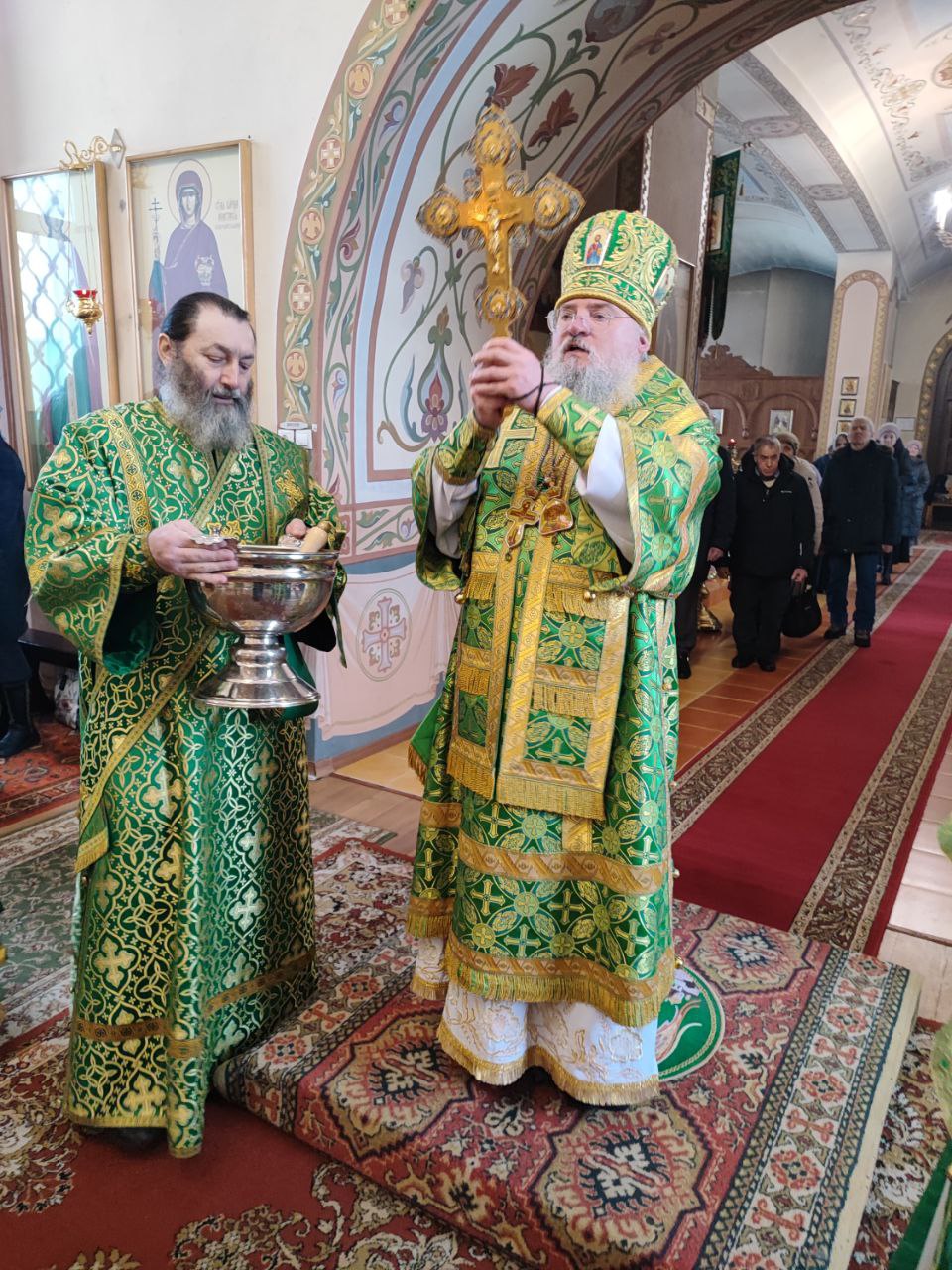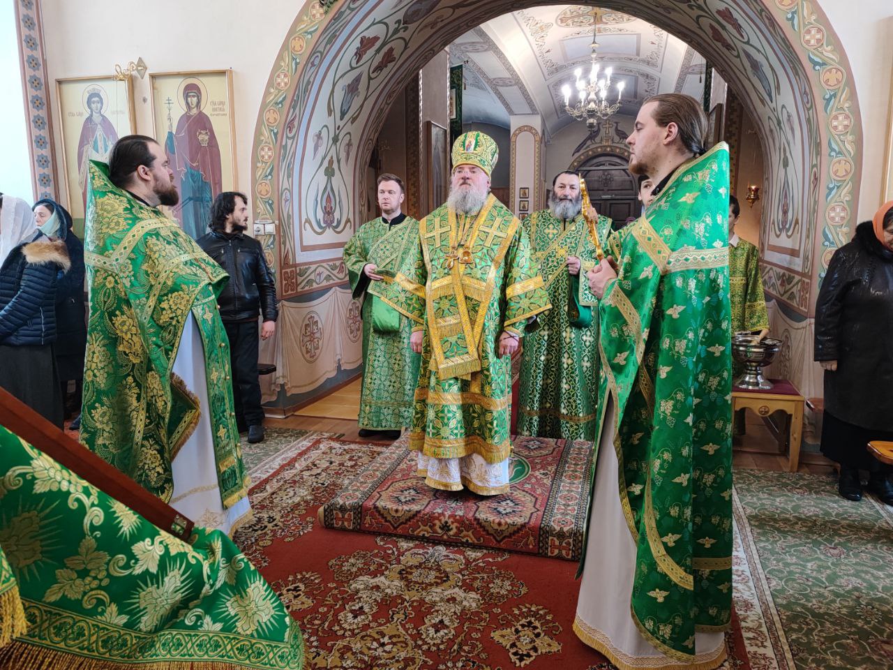 Архипастырю сослужили: настоятель храма протоиерей Сергий Сычев, иерей Виктор Носов и диакон Евгений Ковригин.
