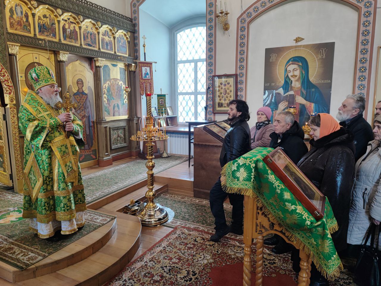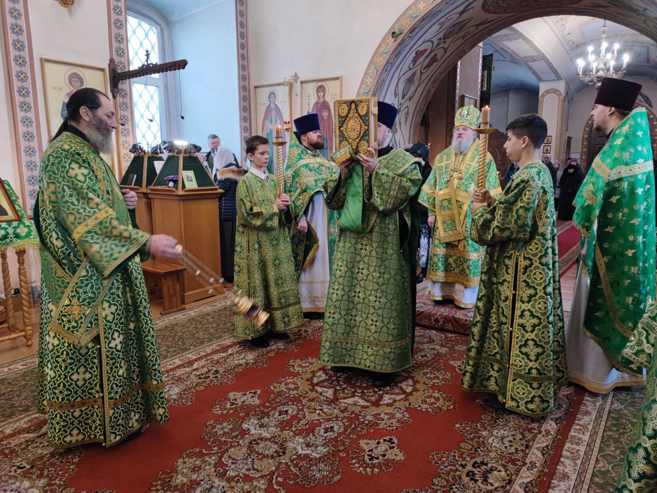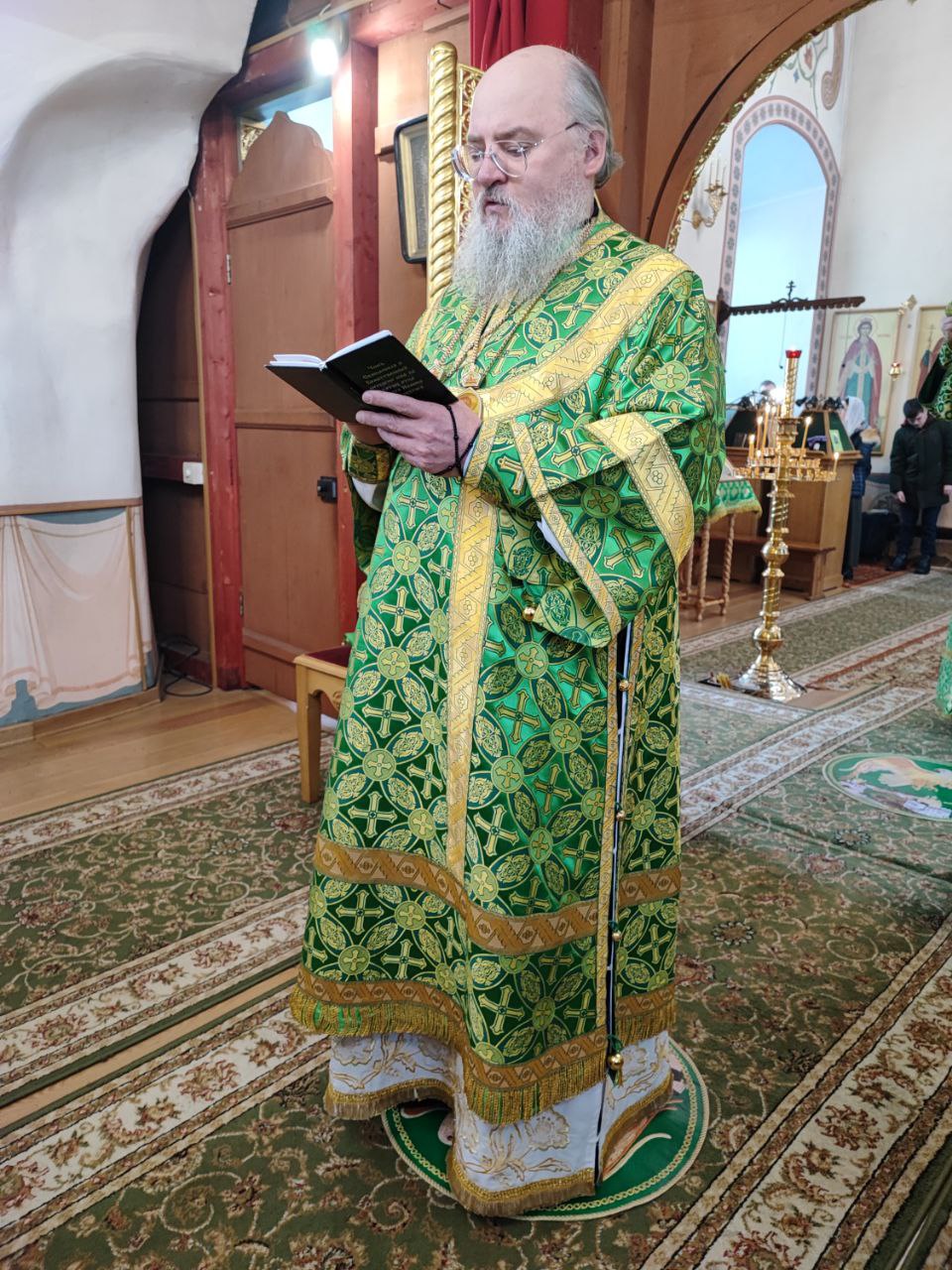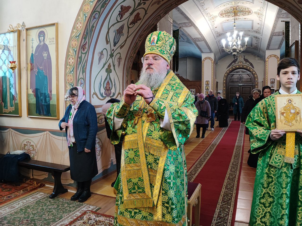 Архипастырю сослужили: настоятель храма протоиерей Сергий Сычев, иерей Виктор Носов и диакон Евгений Ковригин.