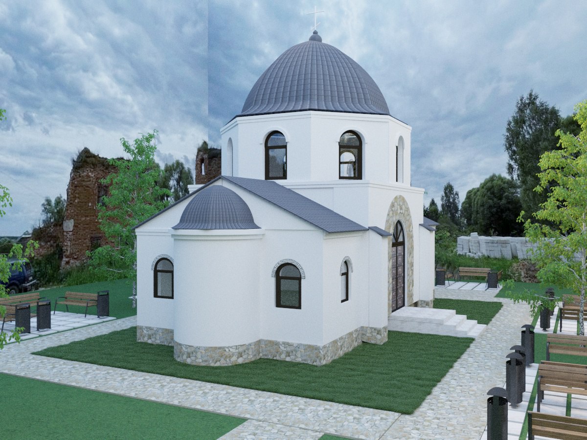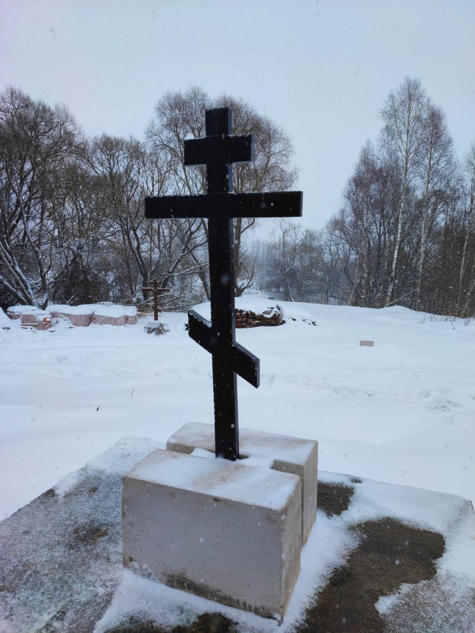******Из истории решения строительства храма: в 2022 году жители села Клюксы обратились к настоятелю храма в честь Зачатия Иоанна Предтечи в селе Губино иерею Максиму Изопову, который на протяжении двух лет ездил к ним служить молебны, с просьбой построить  часовню на месте разрушенного Покровского храма в селе Хозцы. Объясняя это тем что у них есть деревянный сруб, который можно установить,  чтобы не совершать молебны под открытым небом. Составили прошение от жителей деревни Клюксы и передали прошение в Козельскую епархию. Было получено благословение правящего архиерея о постройке  храма-часовни. Этот ответ был передан жителям деревни через иерея Максима Изопова так как связь была через него. Посовещавшись, написали новое прошение на строительство храма-часовни с подписями от 26 дворов. Получили положительный ответ из  епархии и приступили к разработке проекта, которых в процессе оказалось три прежде принятия окончательного решения.  14 октября в 2022 года  епископ Козельский и Людиновский Никита освятил место под строительства нового храма честь Иконы Божией Матери  «Достойно есть».