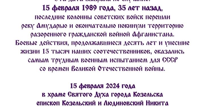15 февраля -день памяти россиян, исполнявших свой воинский долг за приделами нашего Отечества