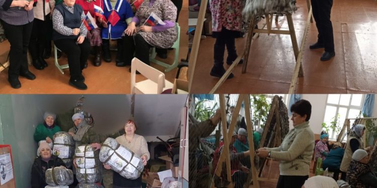 с тёплыми вязаными вещами, бельём и гигиеническими принадлежностями,  коробки с гостинцами, консервациями и другими продуктами и вещевым имуществом.