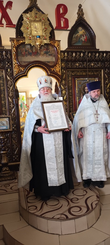 Приход Свято-Лазаревского храма посетил благочинный Людиновского округа Козельской епархии, настоятель Казанского собора  протоиерей Алексий Жиганов, который по завершении богослужения, по благословению епископа Козельского и Людиновского Никиты, вручил архиерейскую грамоту, а отец настоятель Лазаревского храма юбилейный знак «10 лет образования Козельской епархии» сыну протоиерея Димитрия  Ивану Дмитриевичу Губаль за усердные труды и активную помощь в строительстве колокольни Лазаревского храма.