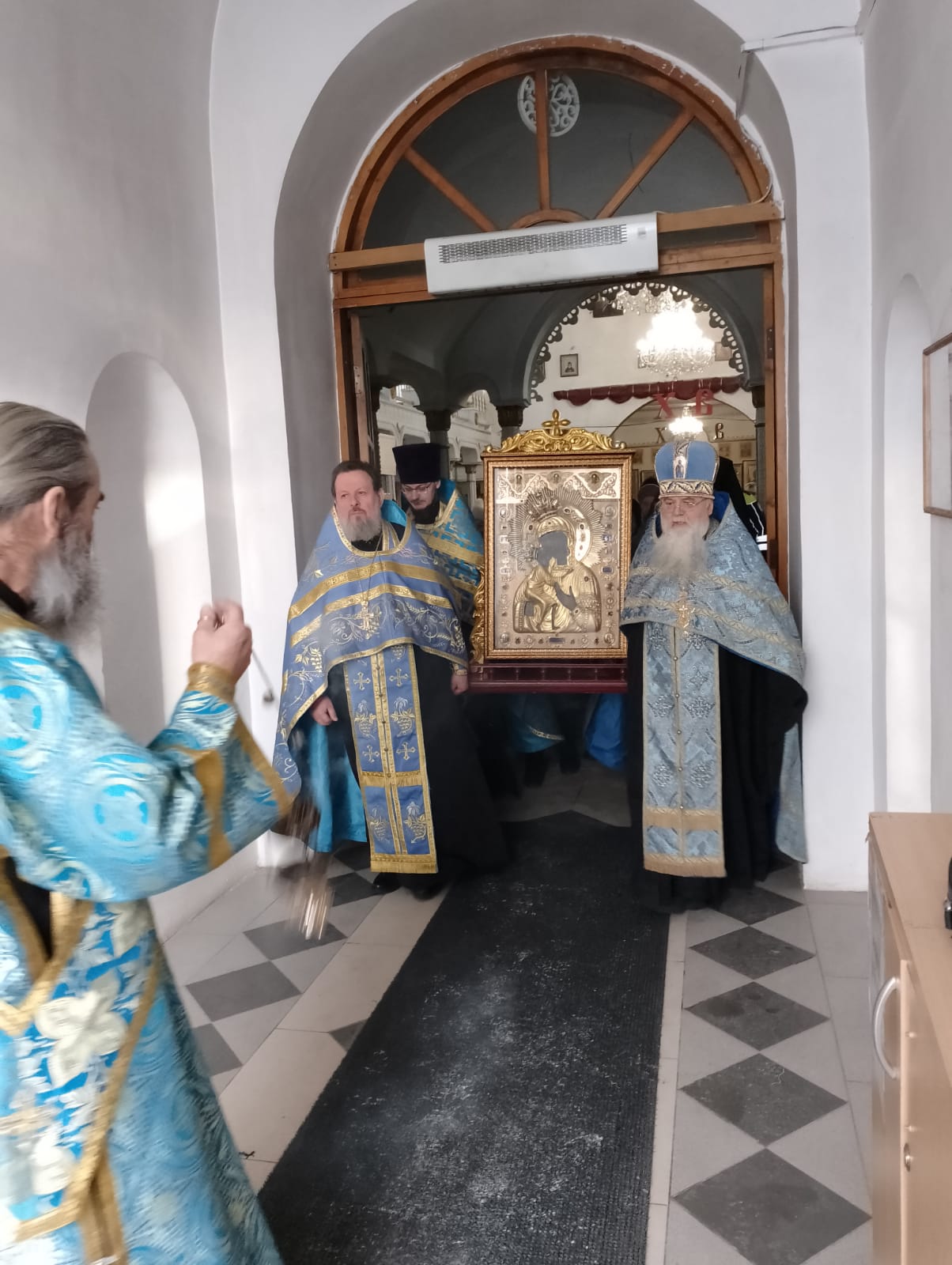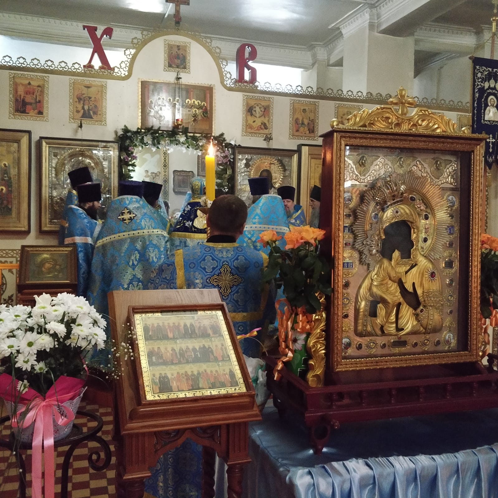 После богослужения до отъезда чудотворной иконы священнослужители епархии совершали акафисты Пресвятой Богородице пред Ее чудотворным образом.