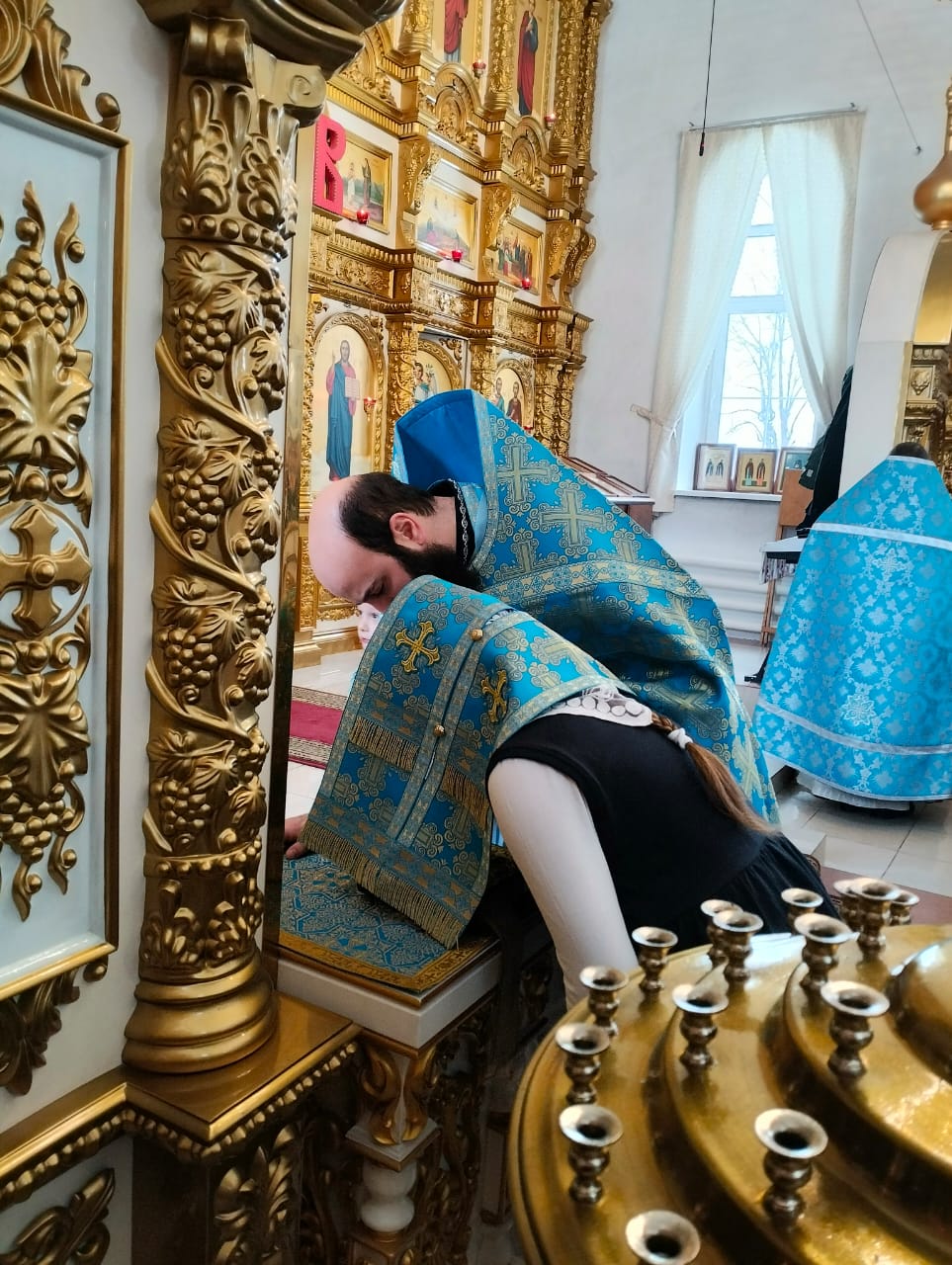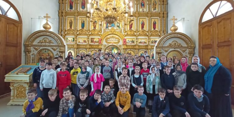 22 февраля под сводами храма во имя Космы и Дамиана п. Думиничи собрались школьники со всего района на заключительное, самое важное мероприятие декады православной культуры, Перед началом мероприятию была совершена детская Божественная Литургия. Настоятель храма протоиерей Иоанн Староста возглавил богослужение, ему сослужили иерей Димитрий Гаврилов, настоятель храма Рождества Богородицы с. Хотьково и храма Успения Пресвятой Богородицы с. Чернышено, иерей Андрей Товмасян, настоятель храма Преображения Господня с. Брынь. Детские голоса лились с клироса, удивительные сестры Быковы и Сидоровы красиво и мелодично исполняли песнопения. Это богослужение — начало зарождения детского церковного хора в нашем благочинии. Дети, вместе с учителями основ православной культуры, имели возможность соприкоснуться с Таинствами Церкви, прочувствовать сокровенность и волнение. Детские искренние молитвы возносились Богу, каждый думал о своих тревогах и нуждах. В этот день ребята постигали азы православия не за партой в школе, а в доме Божьем. Надо признать, что атмосфера в храме, порядок богослужения настраивали детей на более детальное изучение православной культуры. Ребята тихонечко читали названия икон, учились самостоятельно писать записки, ставили свечи, уточняли правила во время исповеди. Каждый пытался найти ответы на свои вопросы. Да, это и понятно, ведь многие ребята в храме впервые! На исповедь выстроилась длинная вереница желающих принести покаяние, очень много детей готовились к таинству Причастия. В завершение службы отец Иоанн обратился к детям с проповедью. «Молитва — это разговор с Богом. Сегодня мы вместе возносили молитвы Всевышнему о мире, о своей стране и воинстве, о своих родных и близких. Искренние молитвы слышит Бог, надо только не лениться ходить в храм и участвовать в Таинствах Церкви. Сам Господь своим ученикам говорил о том, чтобы они не препятствовали детям приходить к Нему. Сегодня эту возможность вы получили, благодаря стараниями администрации района, отдела образования, учителям ОПК, родителям.» Поздравил отец Иоанн ребят и взрослых с принятием Святых Христовым Тайн и пригласил всех к столу. Чай, сок, свежеиспеченные булочки и сладости были предложены детям. Добрые и внимательные прихожане храма ухаживали за детьми.