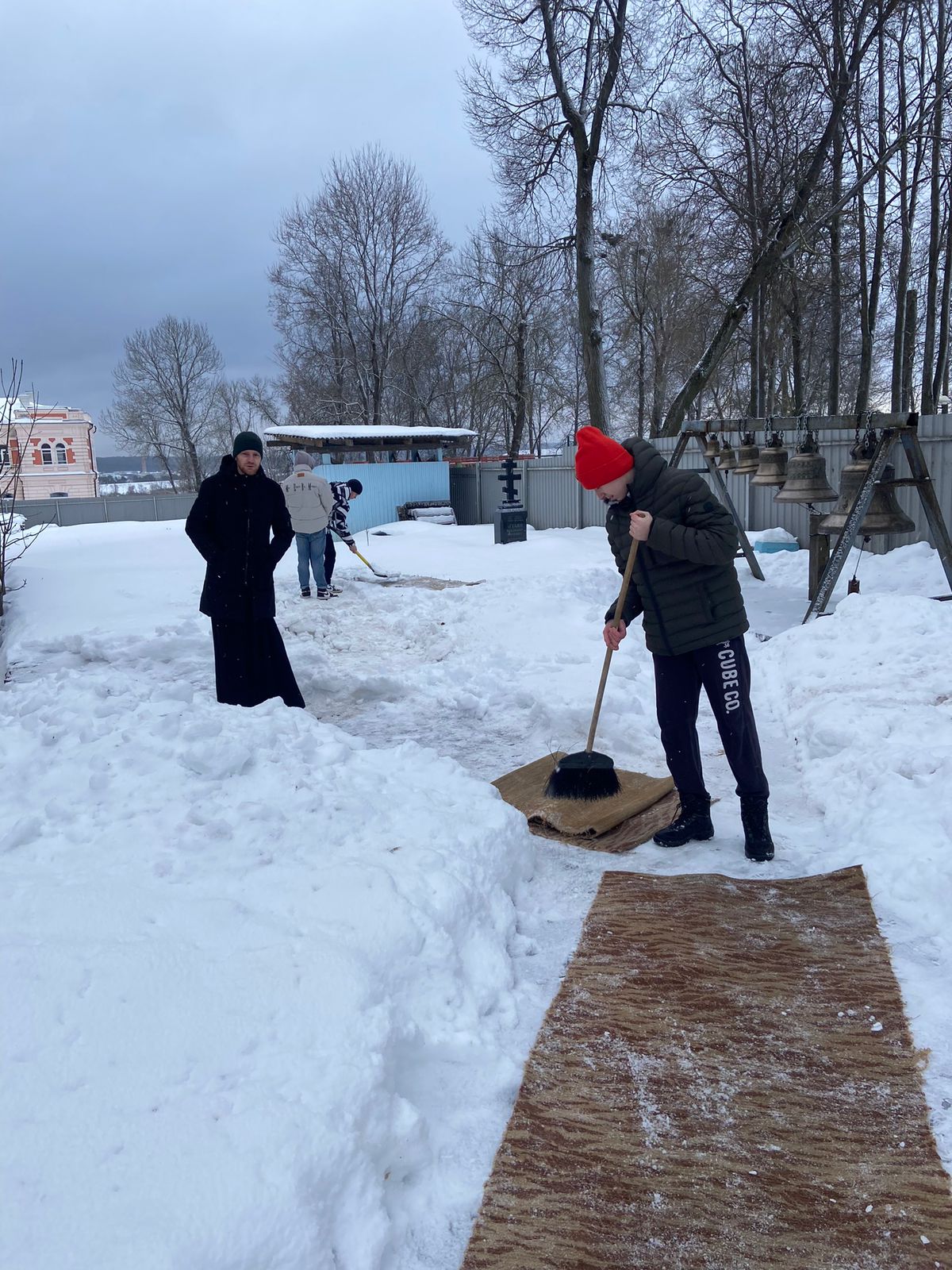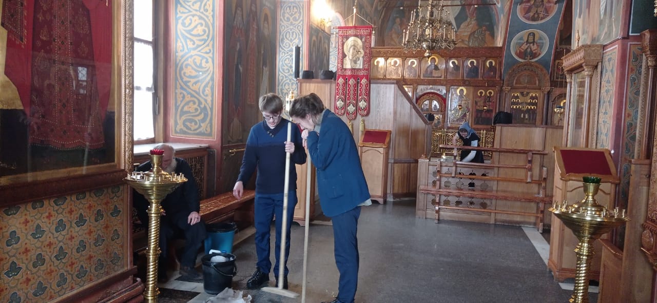 По традиции, каждый год учащиеся 5 -11 классов ЧОУ «Православная гимназия в г. Козельске» принимают участие в акции «Помощь храму». Вот и в этот раз добровольцы вместе с классными руководителями оказали помощь монастырям и храмам г. Козельска. Ребята с задором и энергией взялись за работу. Совместными усилиями они мыли полы и стены, протирали подсвечники и иконы. Вооружившись снеговыми лопатами, дети навели порядок и на территории около храмов.