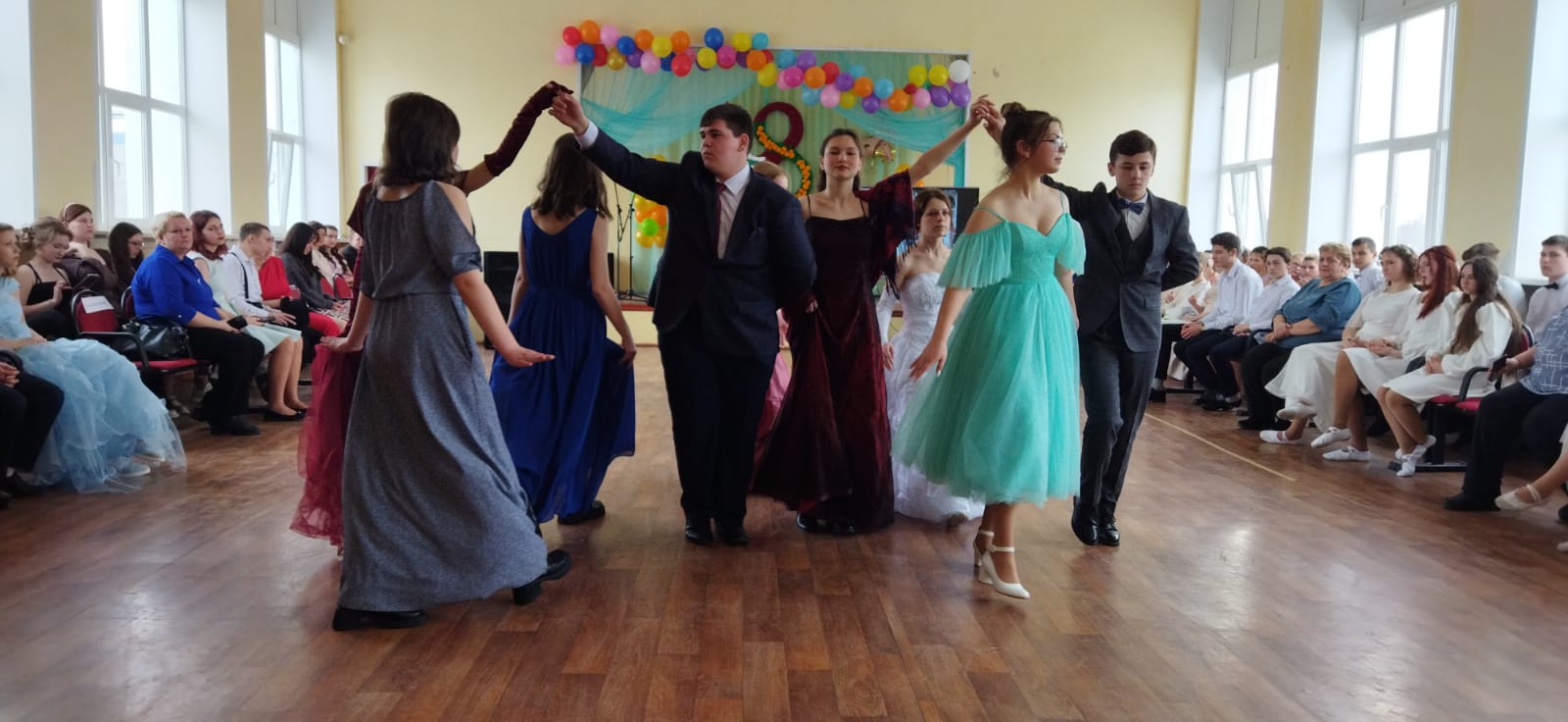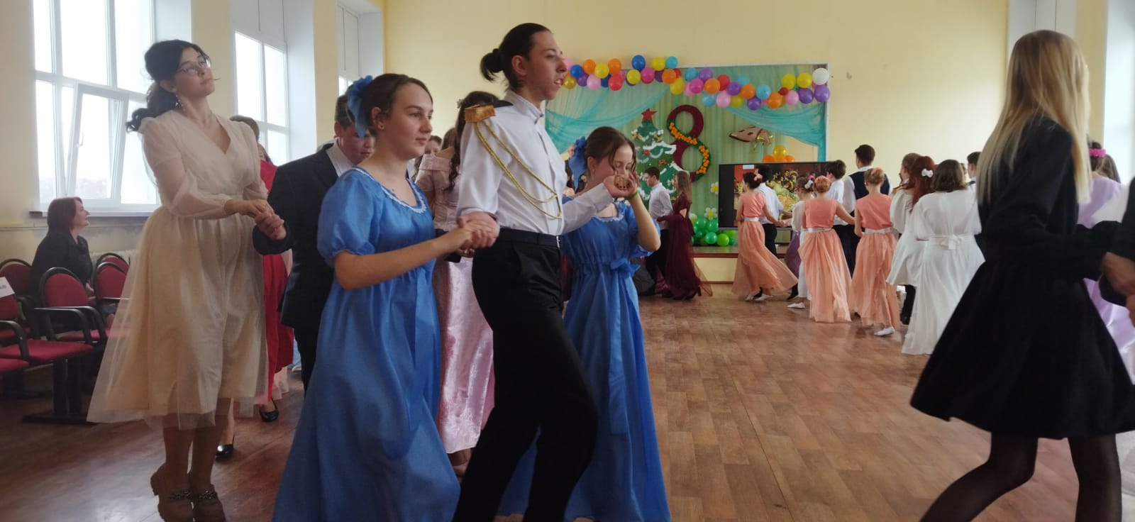 Бал прошел в одно отделение. Под музыкальное сопровождение участники исполняли классические бальные танцы: вальс, польку, торжественный полонез, а также играли в особенные бальные игры.  Два часа пролетели незаметно.  Расходится, не хотелось. Бал закончился, а в зале оставались молодые люди, которые общались,  фотографировались, обменивались контактами и делились впечатлениями.