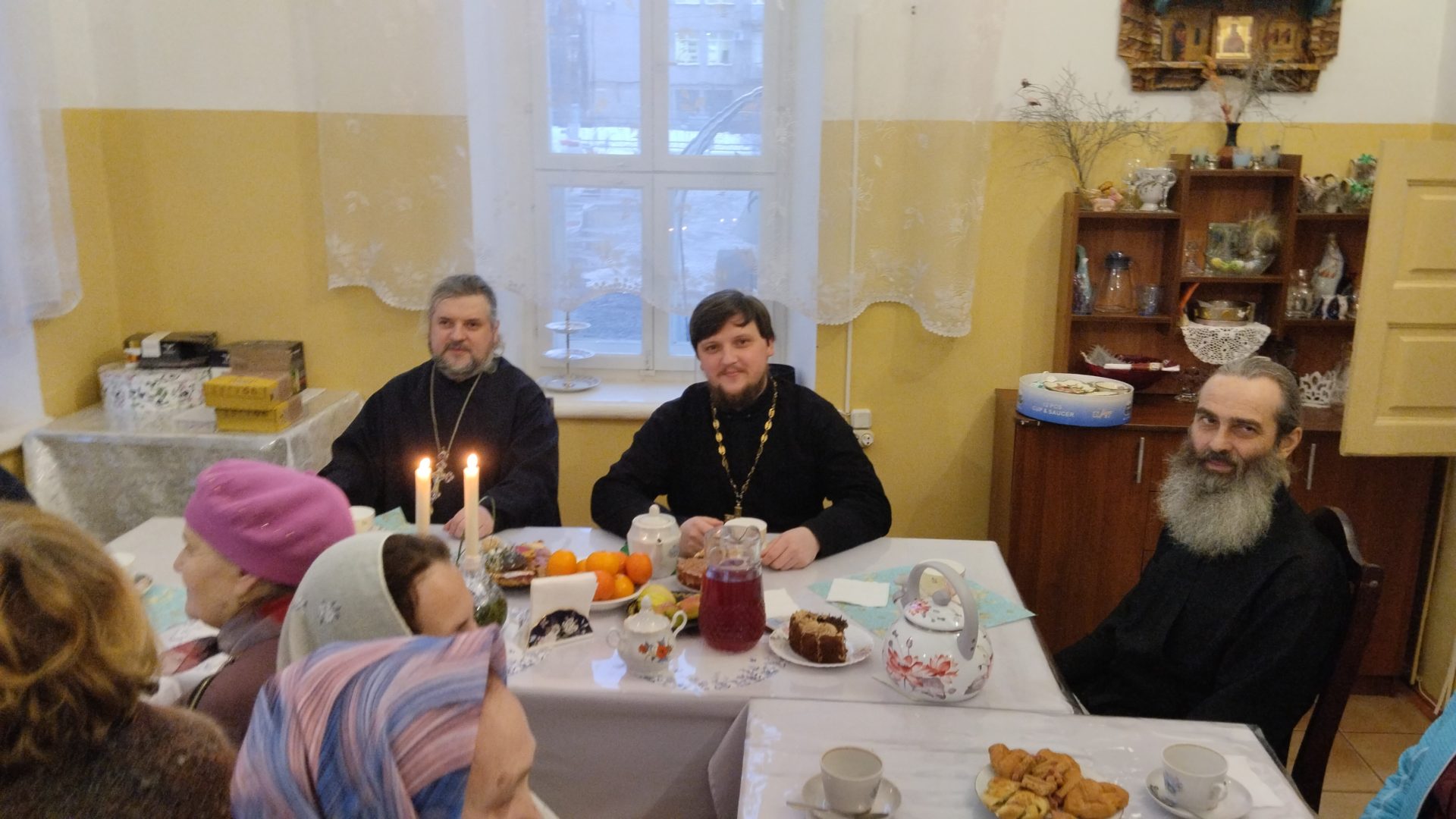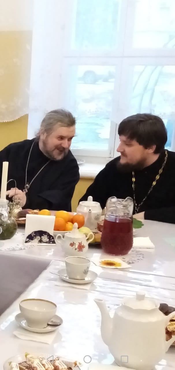 После совместной молитвы беседа за столом была непраздной. В преддверии Великого поста батюшки настроили  на надлежащий лад, уточнив кто какое Евангелие сейчас келейно читает, читаем ли мы толкование к Евангелию и др. Было интересно услышать о планах некоторых из нас на предстоящий пост. Для кого-то будет актуально подтянуть свои навыки чтения на церковно-славянском языке, кто-то намеревается чаще бывать на службах в храме, кто-то надеется, что именно в это время удастся выучить наизусть отдельные псалмы.
