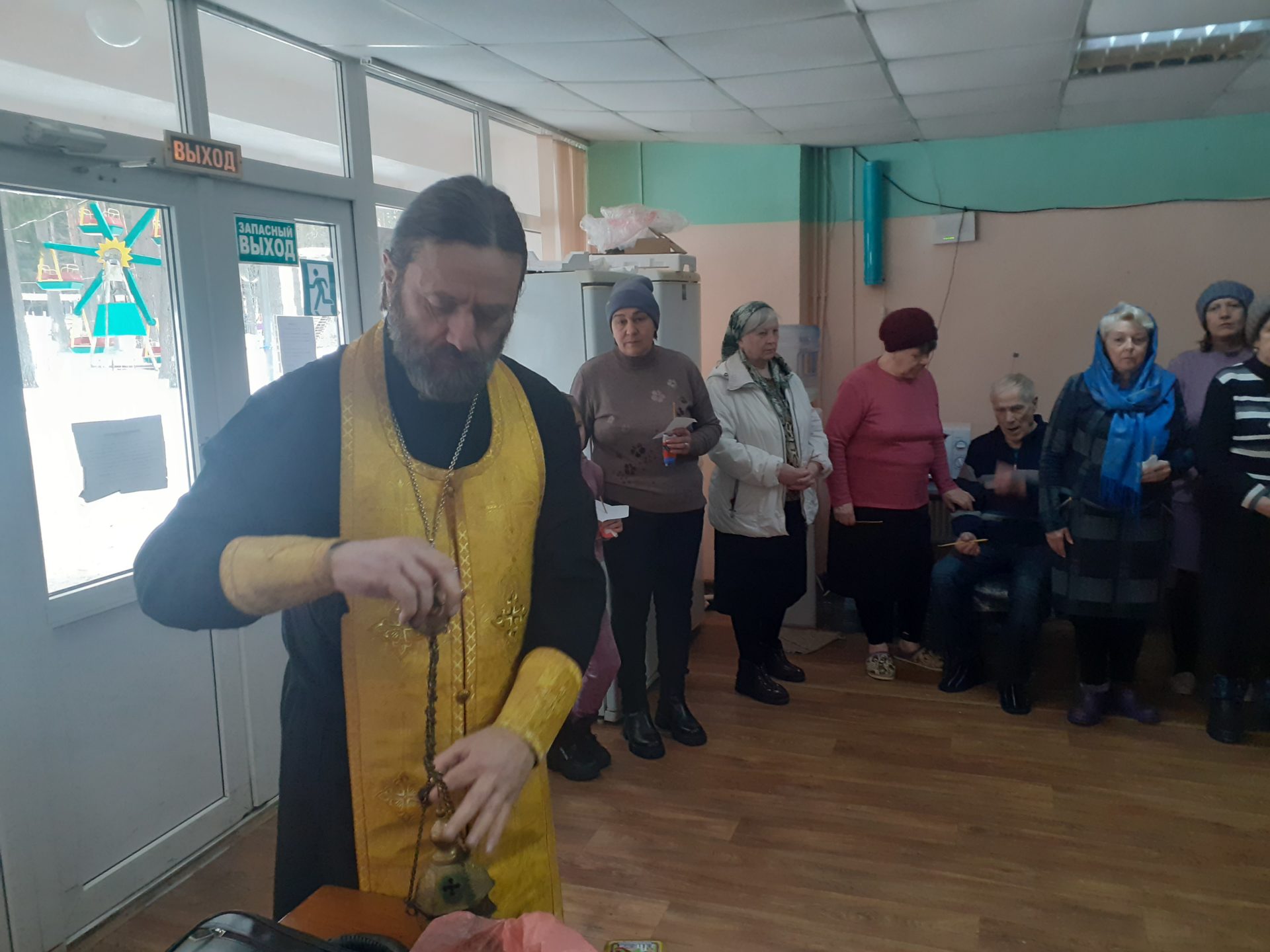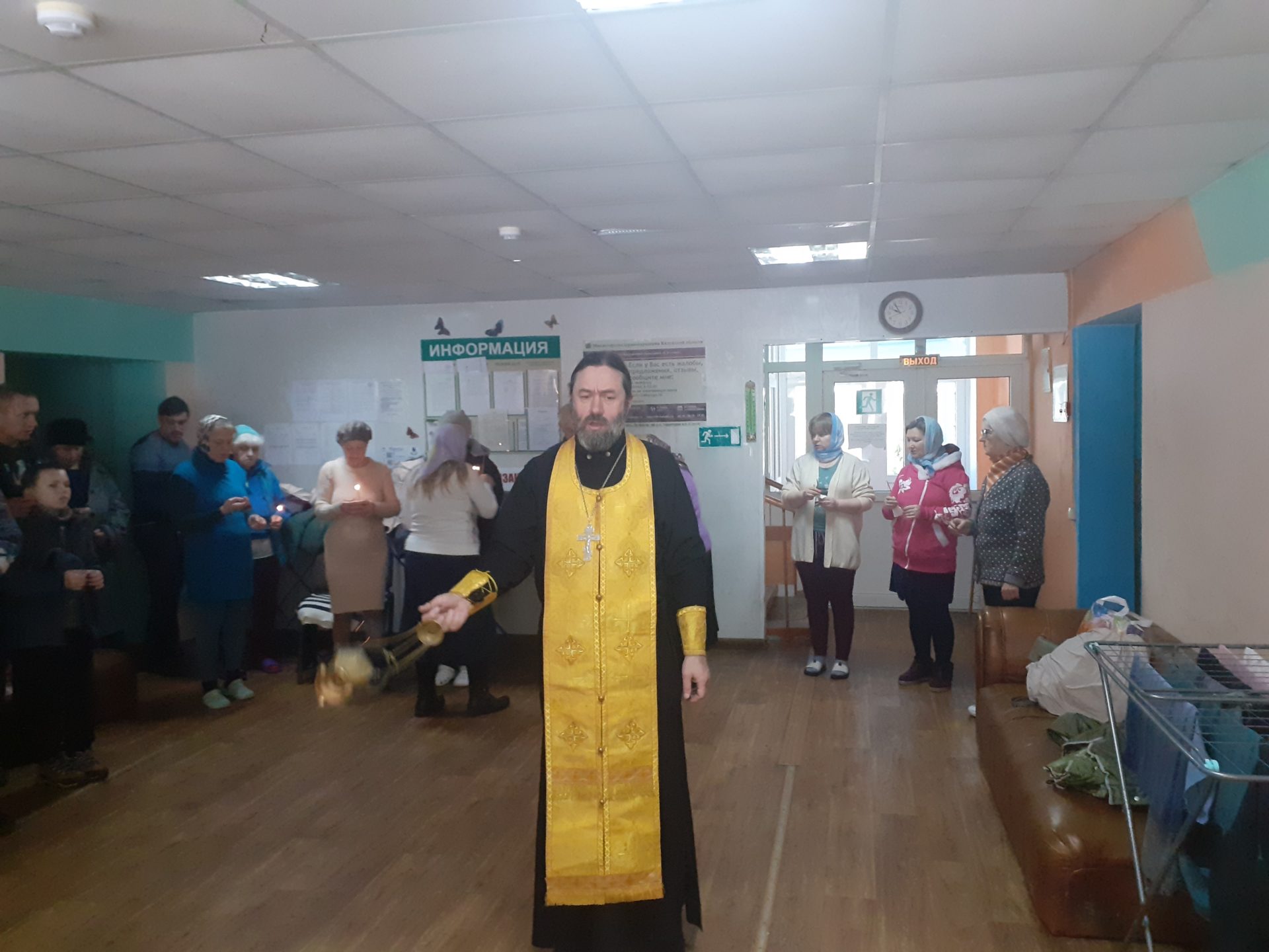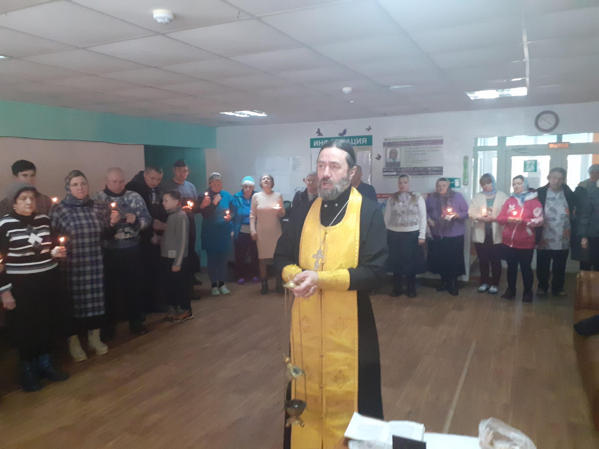 Все желающие помолиться собрались в холле одного из корпусов, чтобы почтить память всех усопших своих родственников, близких людей.