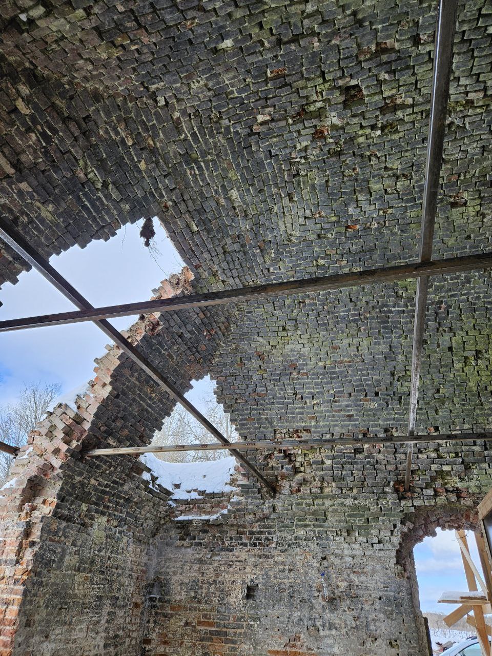 В планах — восстановление стен и сводов алтаря и трапезной части храма.