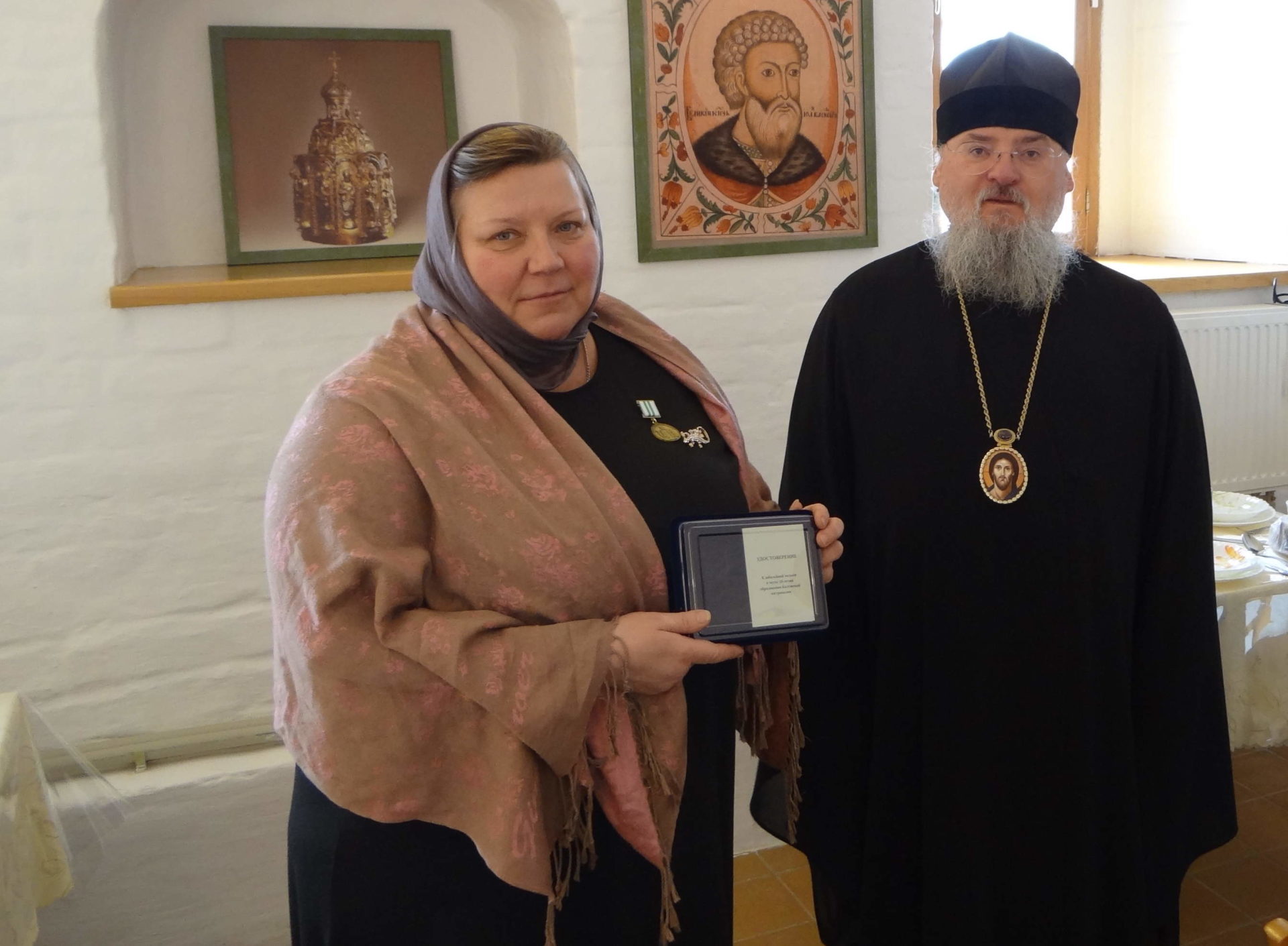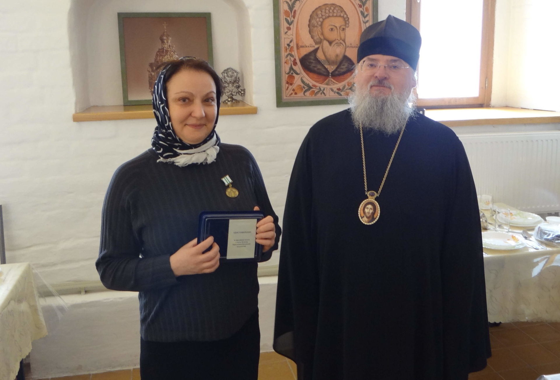 Далее епископ Козельский и Людиновский Никита по благословению Главы Калужской митрополии — митрополита Калужского и Боровского Климента вручил юбилейные медали в честь 10-летия образования Калужской митрополии сотрудников Отдела по церковной благотворительности и социальному служению Калужской епархии Саунину Г. Б. — руководителя Центра помощи кризисным беременным и женщинам с детьми, попавшим в трудную жизненную ситуацию «Материнский ковчег» Калужской епархии, Самохину О. С. — сотрудника Православной благотворительной миссии «Милосердный самарянин» Калужской епархии, Горчакову Т. Ю. — сотрудника Отдела по церковной благотворительности и социальному служению Калужской епархии. Игумение Ангелине (Петровой) было вручено благодарственное письмо от митрополита Калужского и Боровского Климента за участие в мероприятиях секции «Социальное служение и милосердие» в рамках XXVI Богородично-Рождественских образовательных чтениях Калужской митрополии.