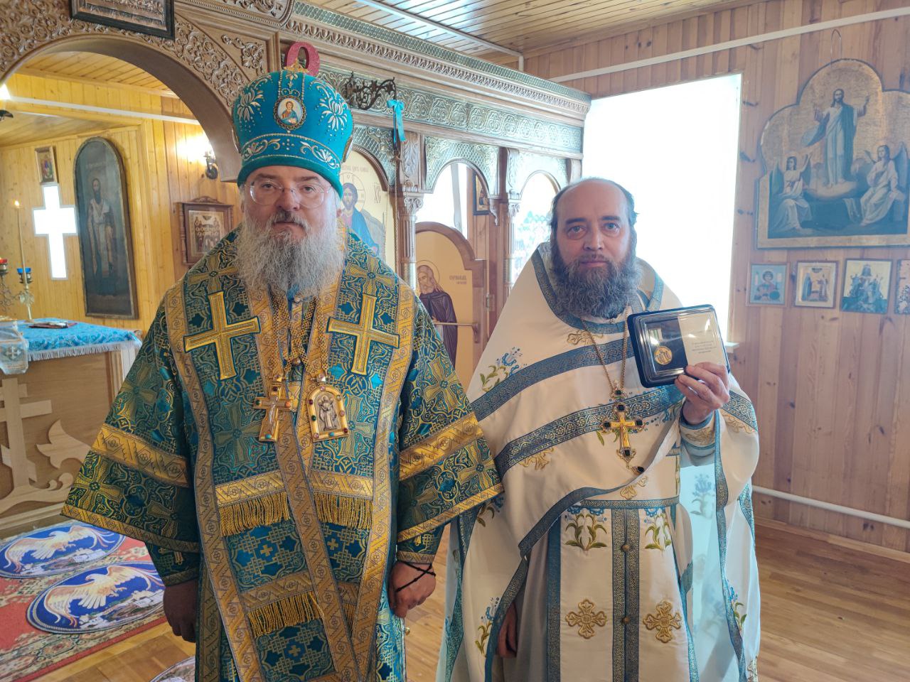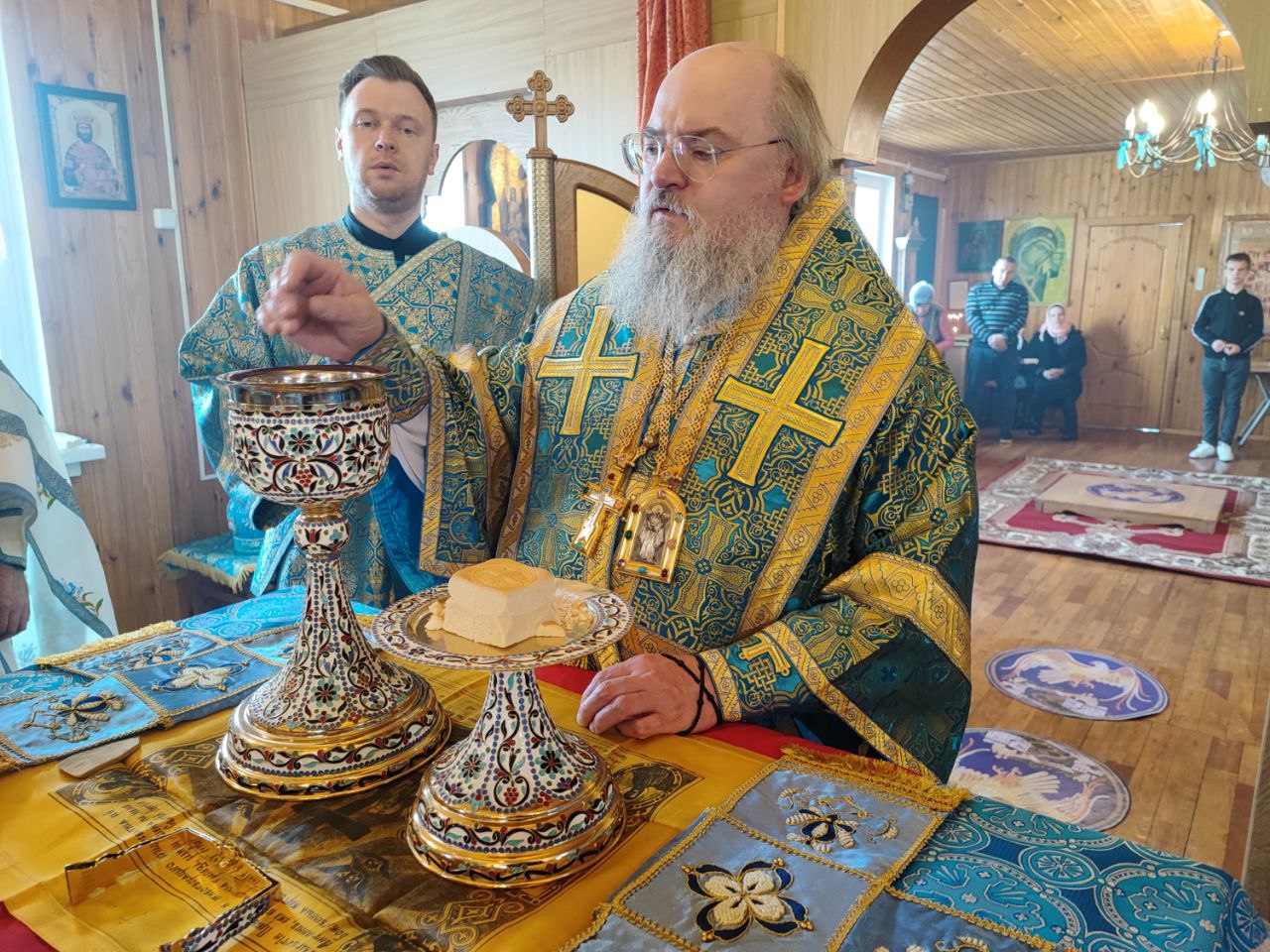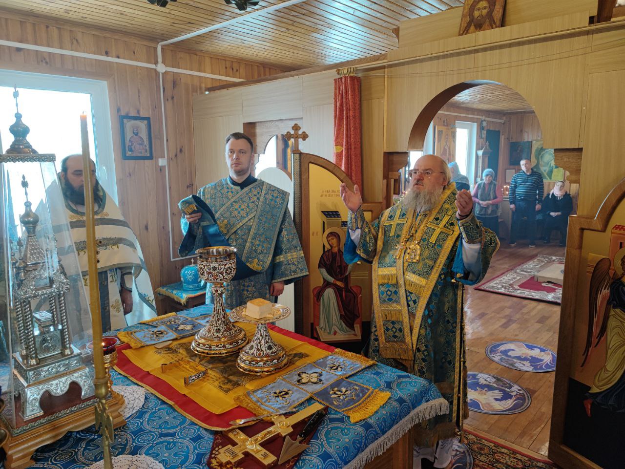 Преосвященнейшему владыке сослужили: протоиерей Дмитрий Сахаров – настоятель прихода, протоиерей Антоний Хатунцев и диакон Евгений Ковригин.