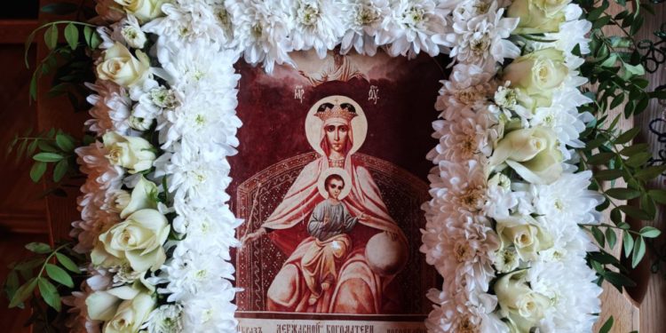 В завершении богослужения священнослужители совершили славление Божией Матери пред Ее образом «Державная», а затем, вознеся молитву Пресвятой Богородице, владыка обратился к богомольцам с архипастырским словом.
