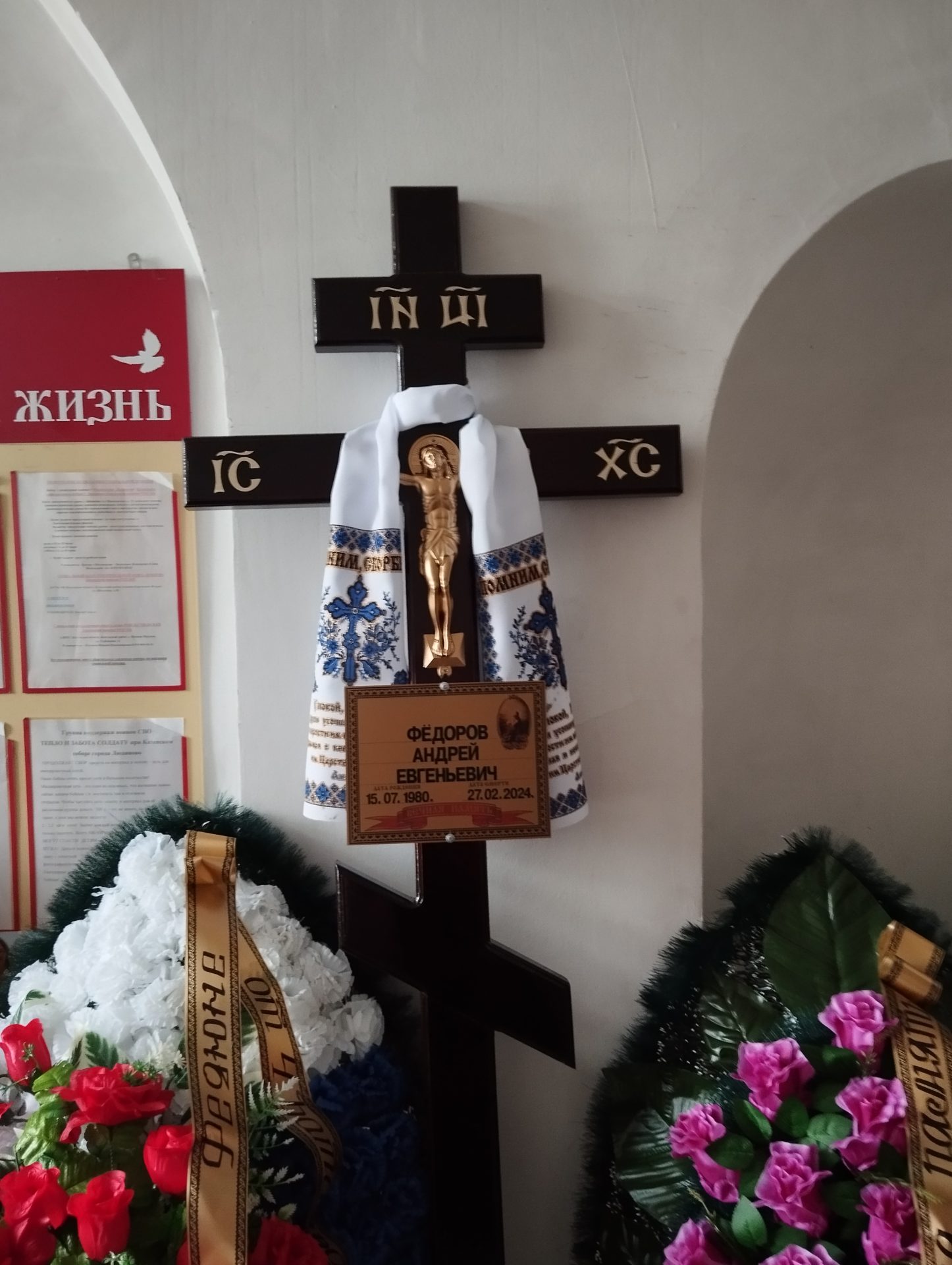 18 марта 2024 года в Казанском соборе города Людиново прошло отпевание воина Андрея Фёдорова. Чин отпевания совершил клирик Казанского собора города Людиново иерей Алексий Сначёв.