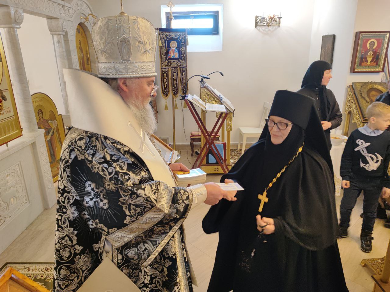 Затем были пропеты тропарь, кондак и величание святым мученикам Севастийским. Владыка возгласил многолетие схиархимандриту Илию (Ноздрину) – духовнику насельниц монастыря, тезоименитство которого приходится на этот день.