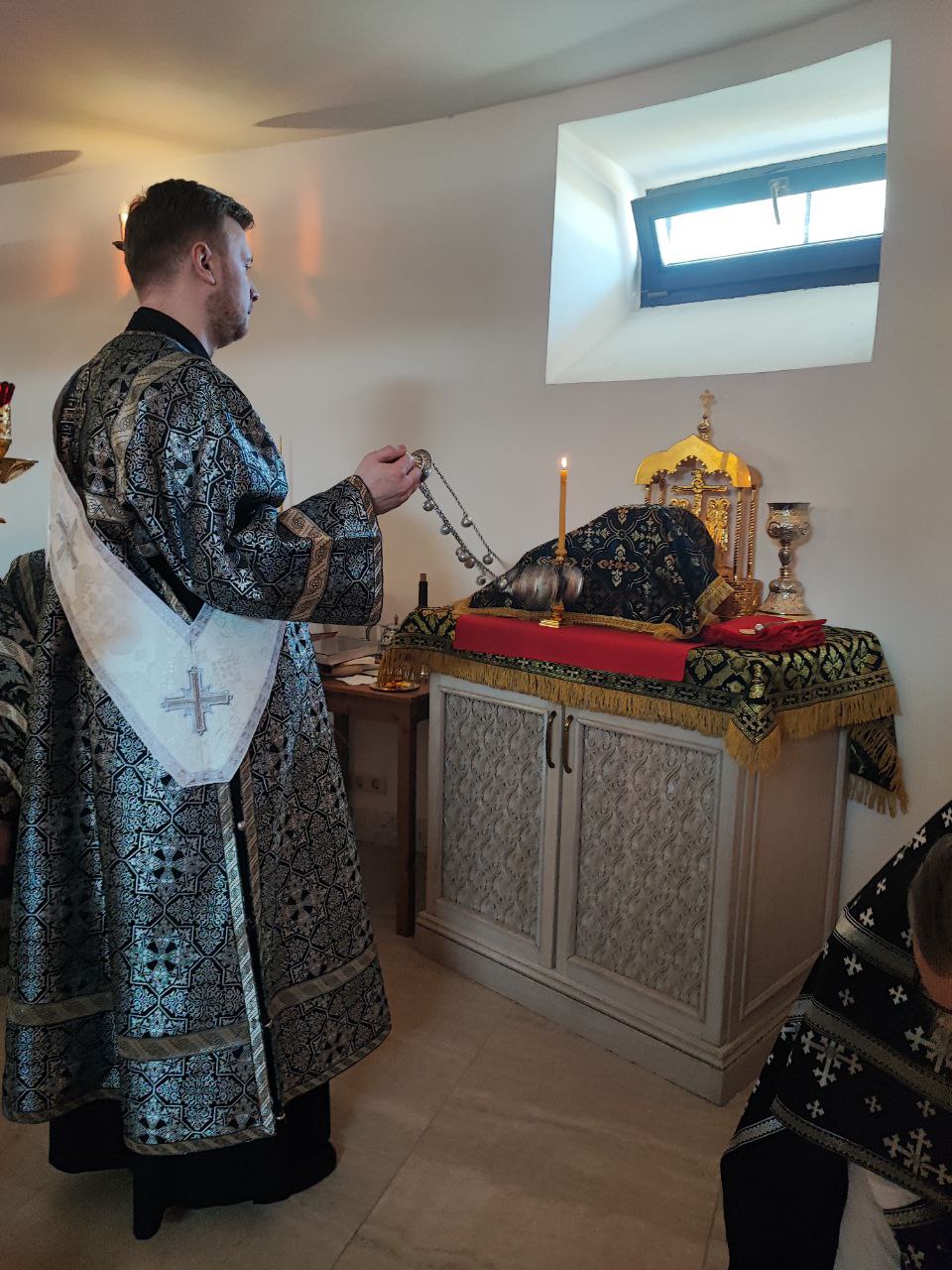 По заамвонной молитве собором духовенства был совершен молебен великомученику Феодору Тирону и традиционное освящение колива. В память чуда великомученика Феодора Тирона (IV век) в пятницу первой недели Великого поста в церкви благословляется и употребляется в пищу коливо (святой Феодор явился антиохийскому епископу Евдоксию и предупредил об осквернении еды на рынках идоложертвенной кровью). Зерна колива символизируют будущее Воскресение, мед или сахар блаженство будущей жизни.