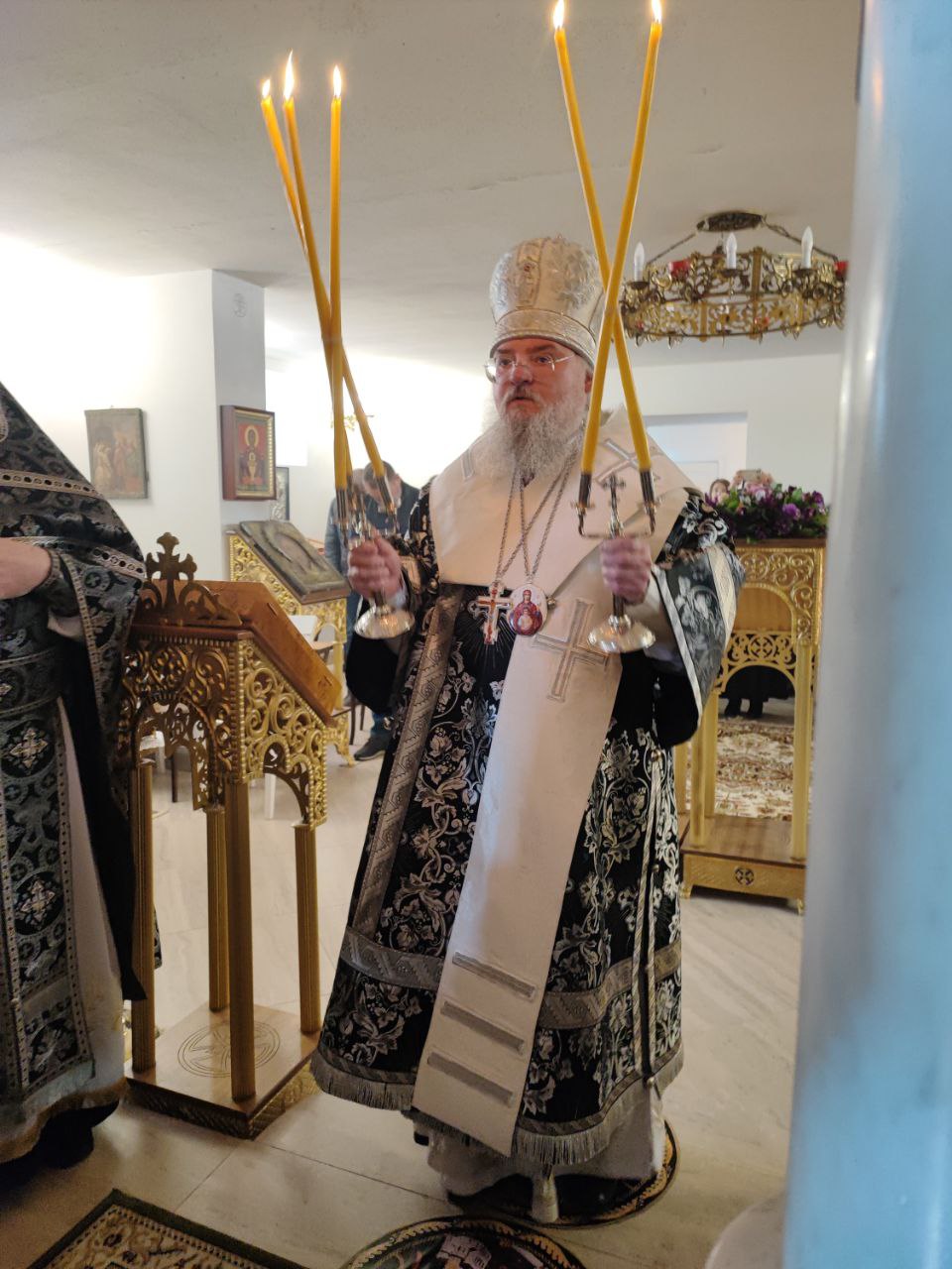 Затем архипастырь поздравил всех молящихся с завершением великопостных богослужений первой седмицы и произнес проповедь.