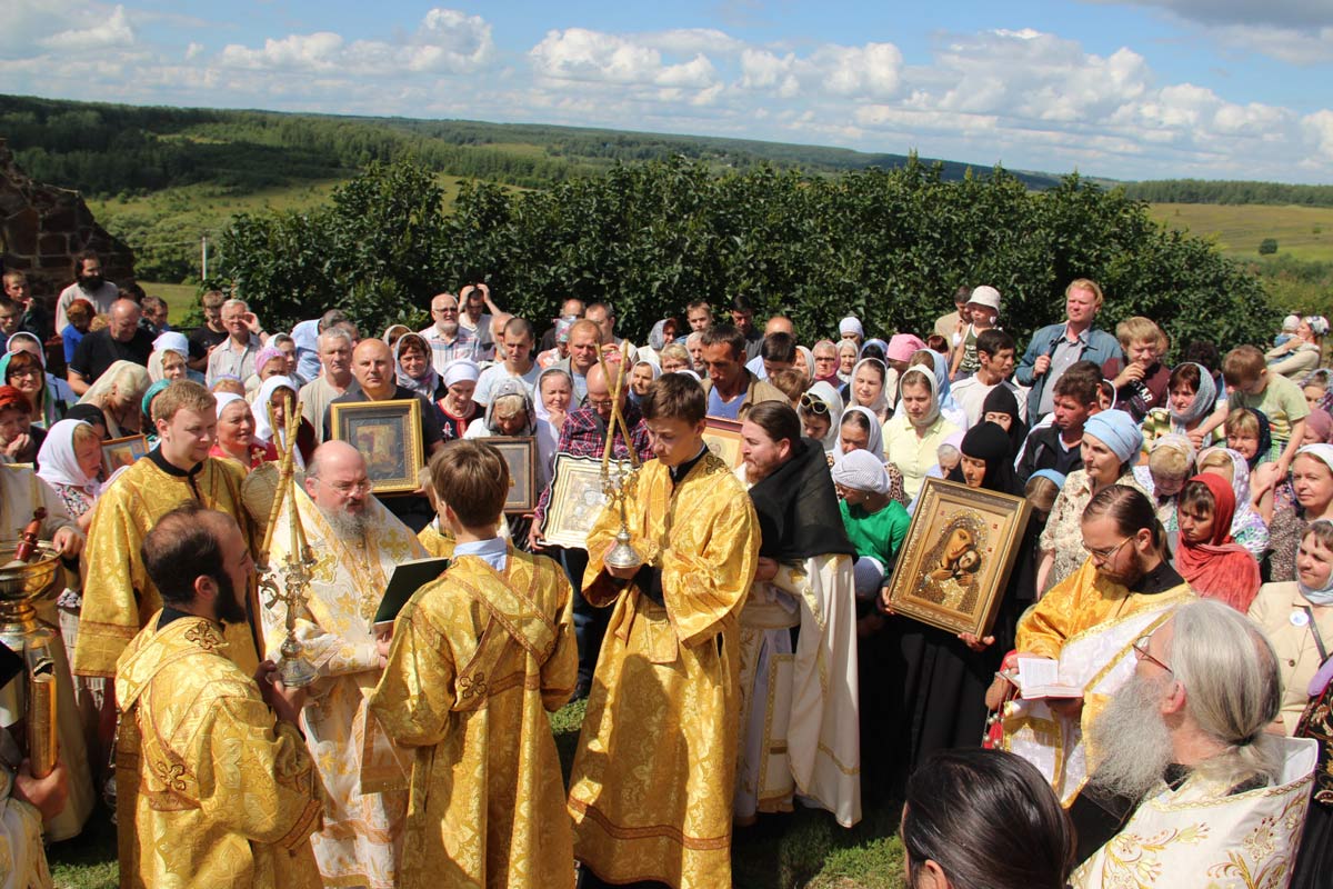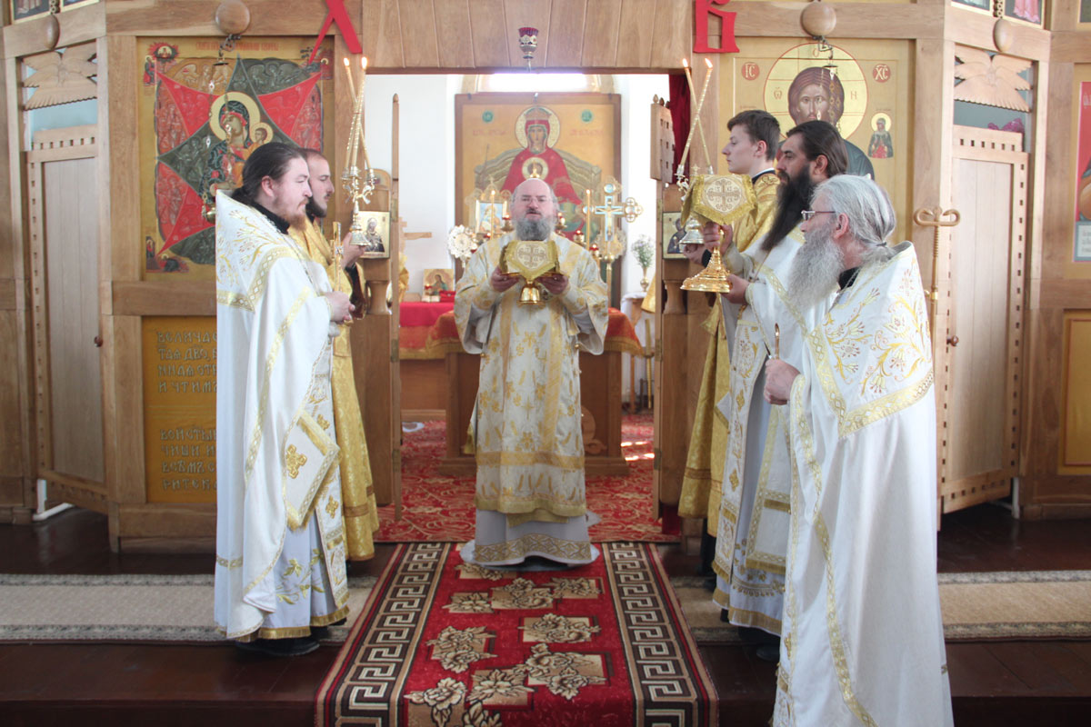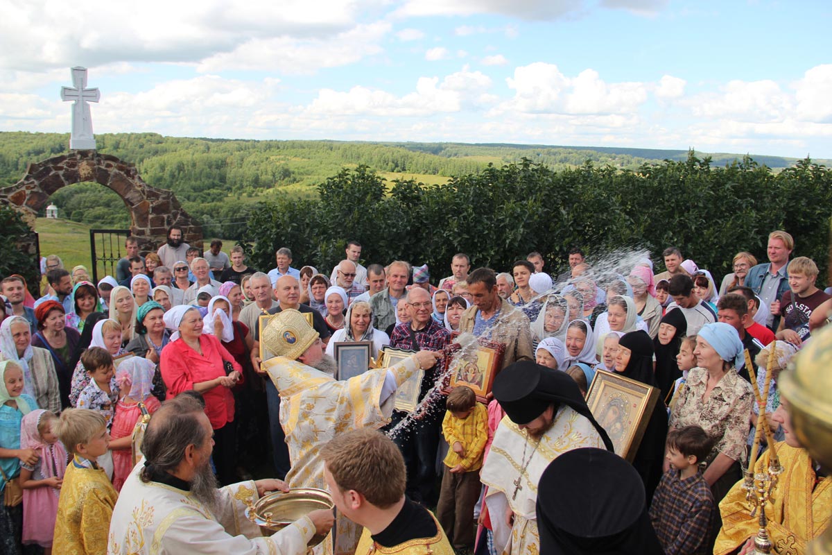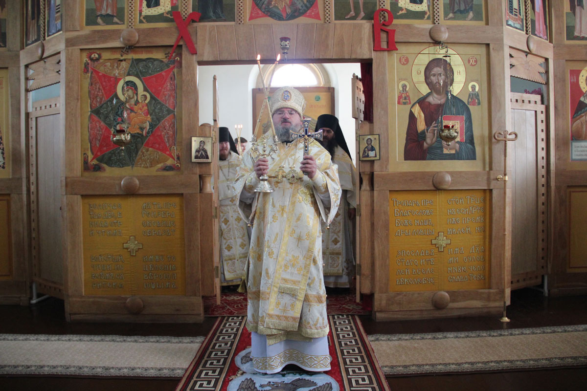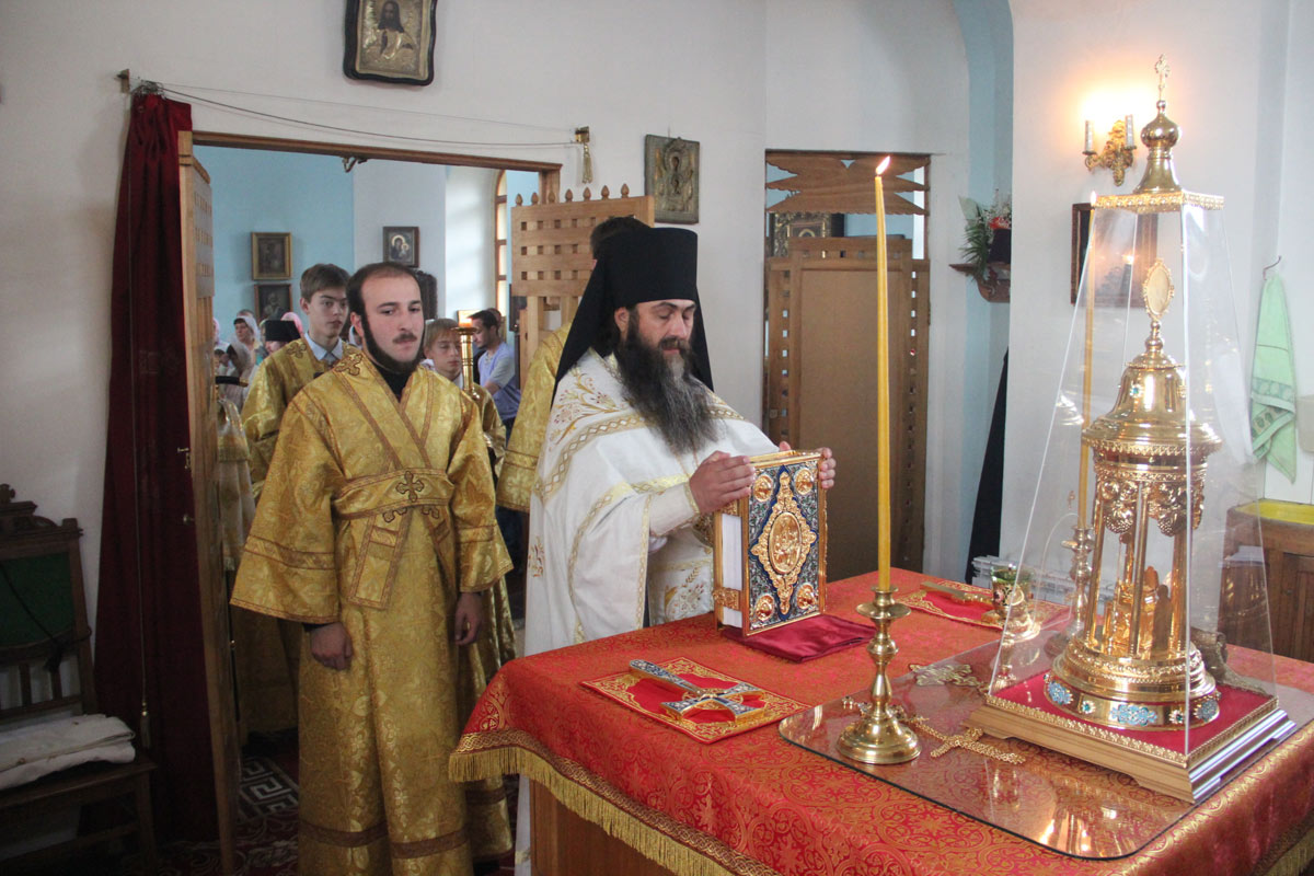 Архипастырю сослужили: игумен Михаил (Семенов) настоятель монастыря Спаса Нерукотворного Пустынь с клириками обители, диакон Евгений Ковригин и диакон Тихон Худяков. После литургии состоялся праздничный крестный ход вокруг храма в завершении которого, молитвенно прославив пророка Божия Илью, владыка обратился к богомольцам с проповедью.