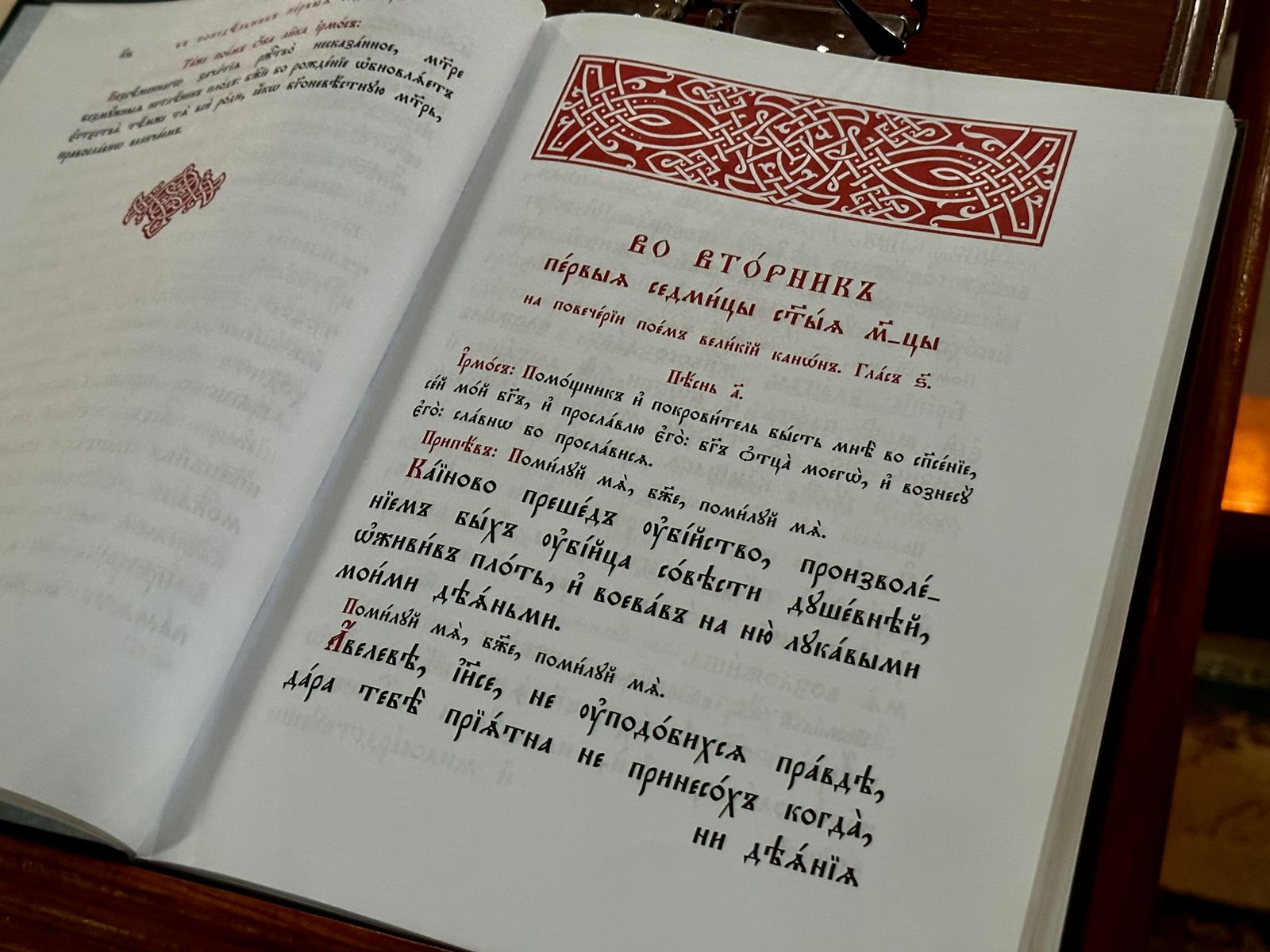 Первые четыре дня Великого Поста в храме читался Великий канон преподобного Андрея Критского – вдохновенное произведение, излившееся из глубины сокрушенного сердца святого человека. Вслушиваясь в слова канона, христианин как бы заново проживает жизнь всего мира и соотносит ее со своей собственной жизнью. Из глубины души, из глубин падения возносится покаянный, слезный голос: «Помилуй мя, Боже, помилуй мя!» Именно этот канон в самом начале Четыредесятницы пробуждает в душе человека глубокие покаянные чувства, настраивает на продолжение всего поста