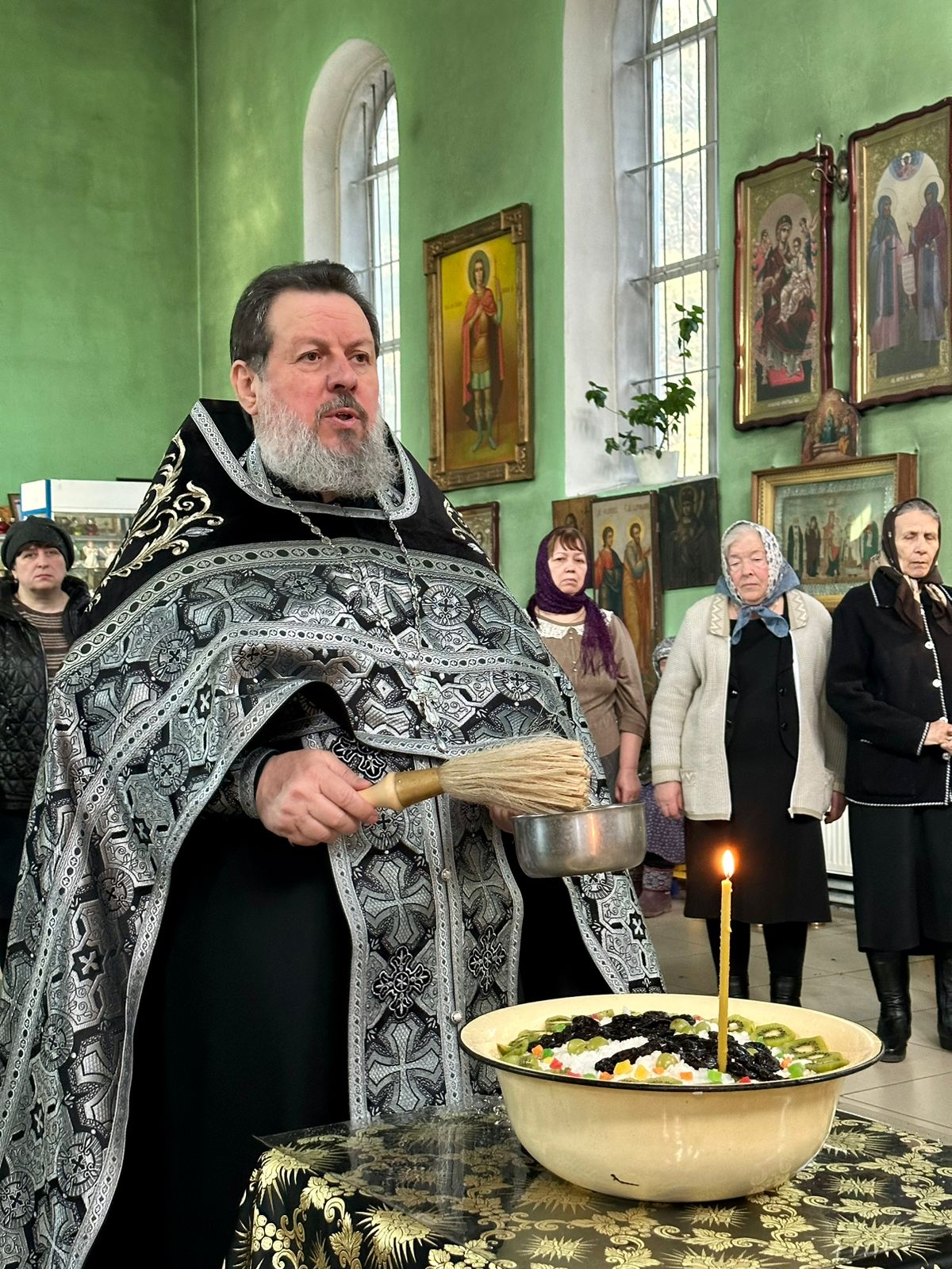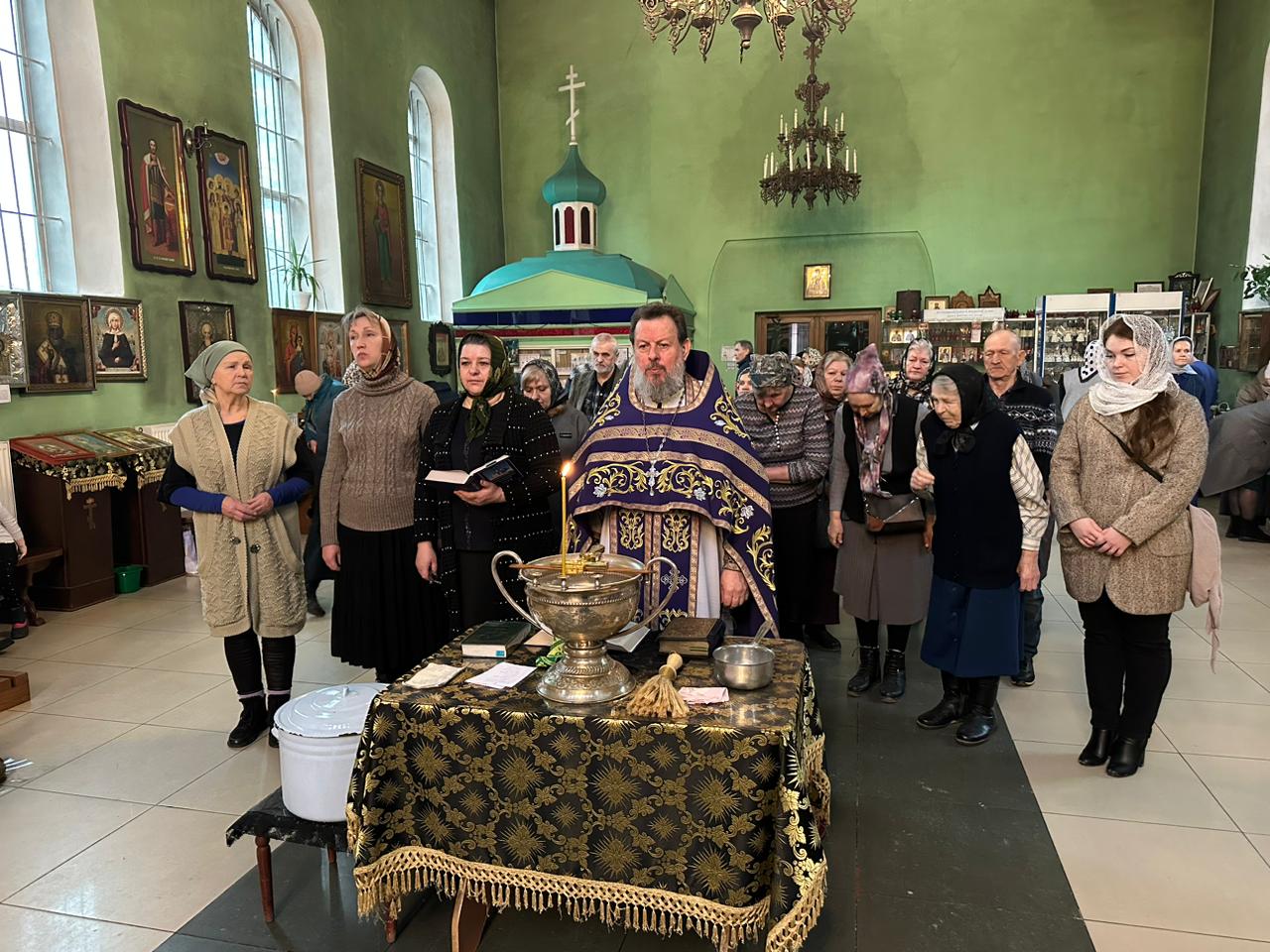 В пятницу первой седмицы поста литургия преждеосвященных Даров завершается не совсем обычно. По заамвонной молитве настоятелем храма был совершен молебен великомученику Феодору Тирону и традиционное освящение колива. После прочтения канона святому великомученику Феодору Тирону отец Василий окропил коливо святой водой, а затем коливо раздавалось всем прихожанам. .