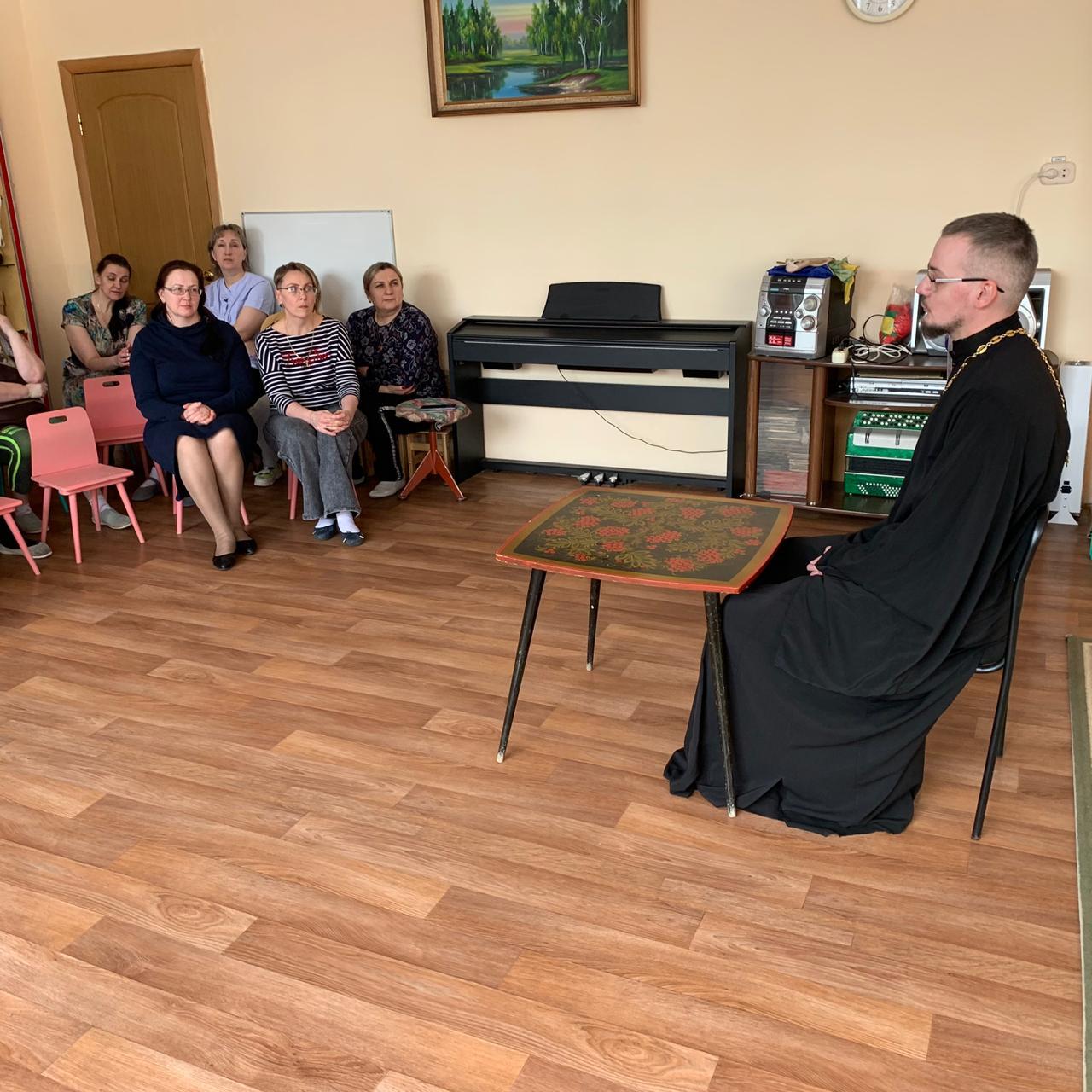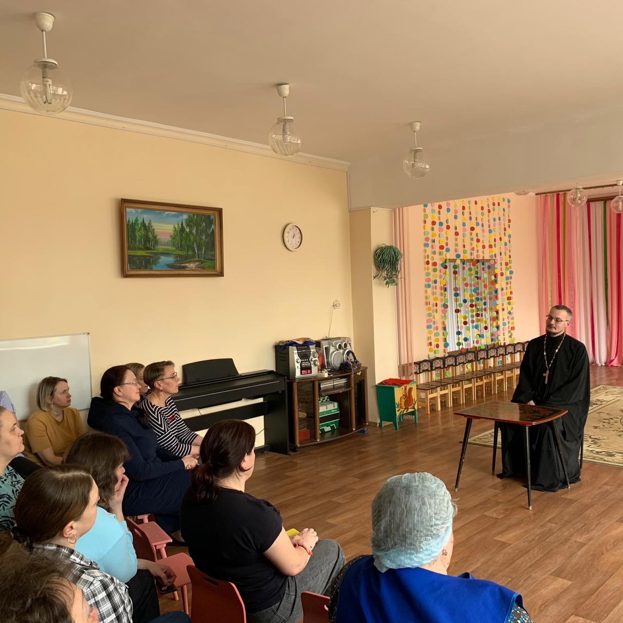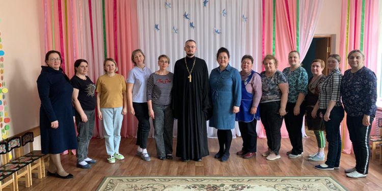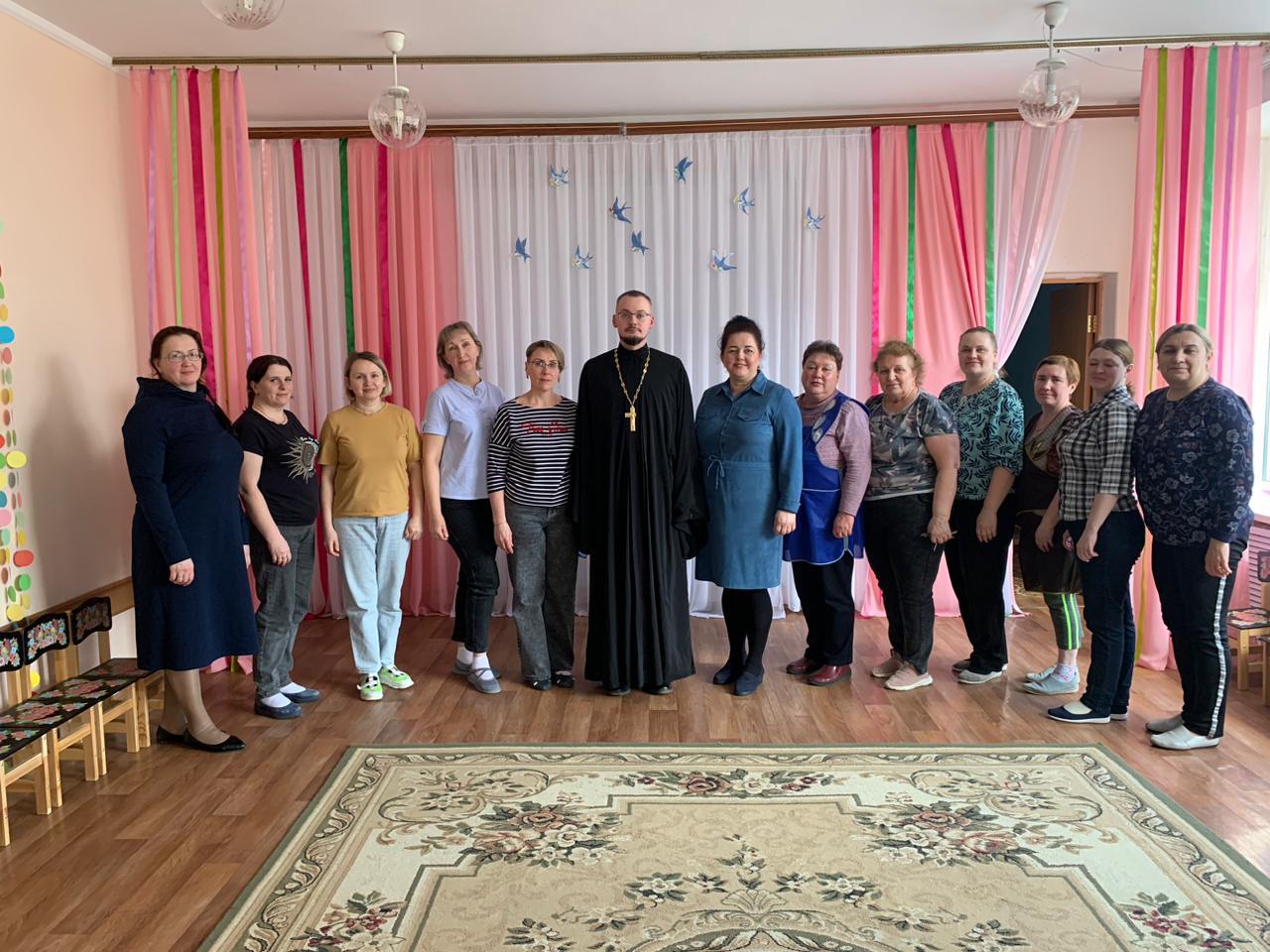 28 марта клирик Казанского собора города Людиново иерей Алексий Сначёв был приглашён на встречу с воспитателями в детский сад № 11 «Светлячок» города Людиново.