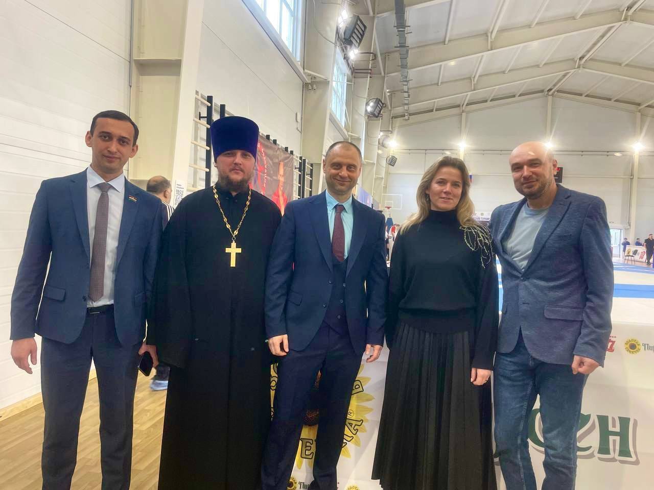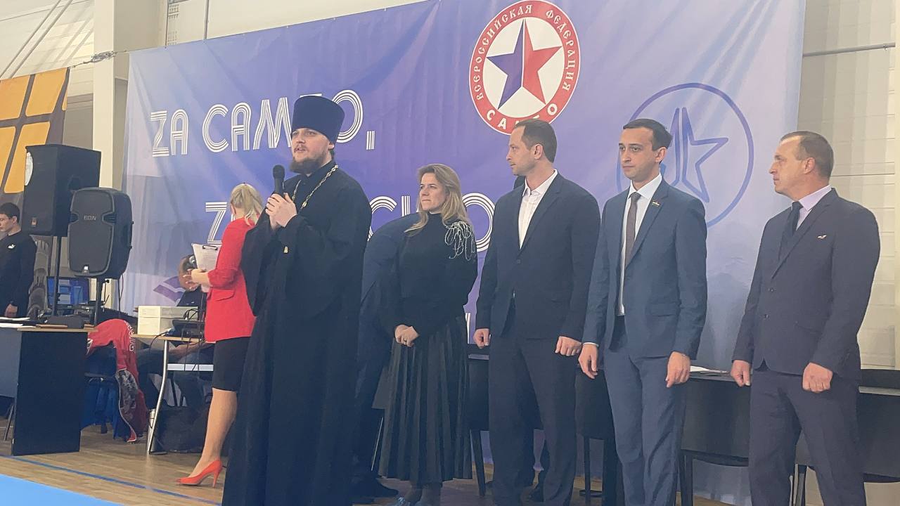 Клирик храма Святителя Лазаря Четверодневного г. Людиново, иерей Иоанн Майоров, обратился с приветственным словом к участникам Всероссийского турнира по самбо имени Александра Невского.