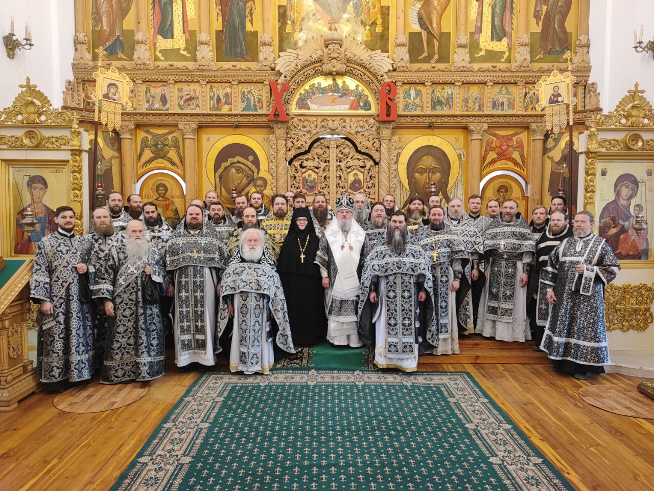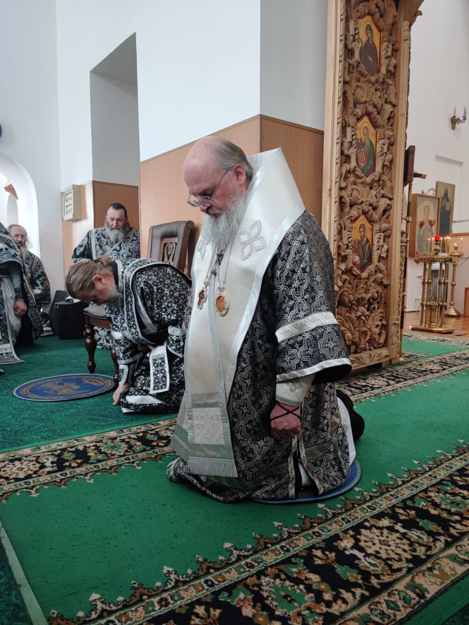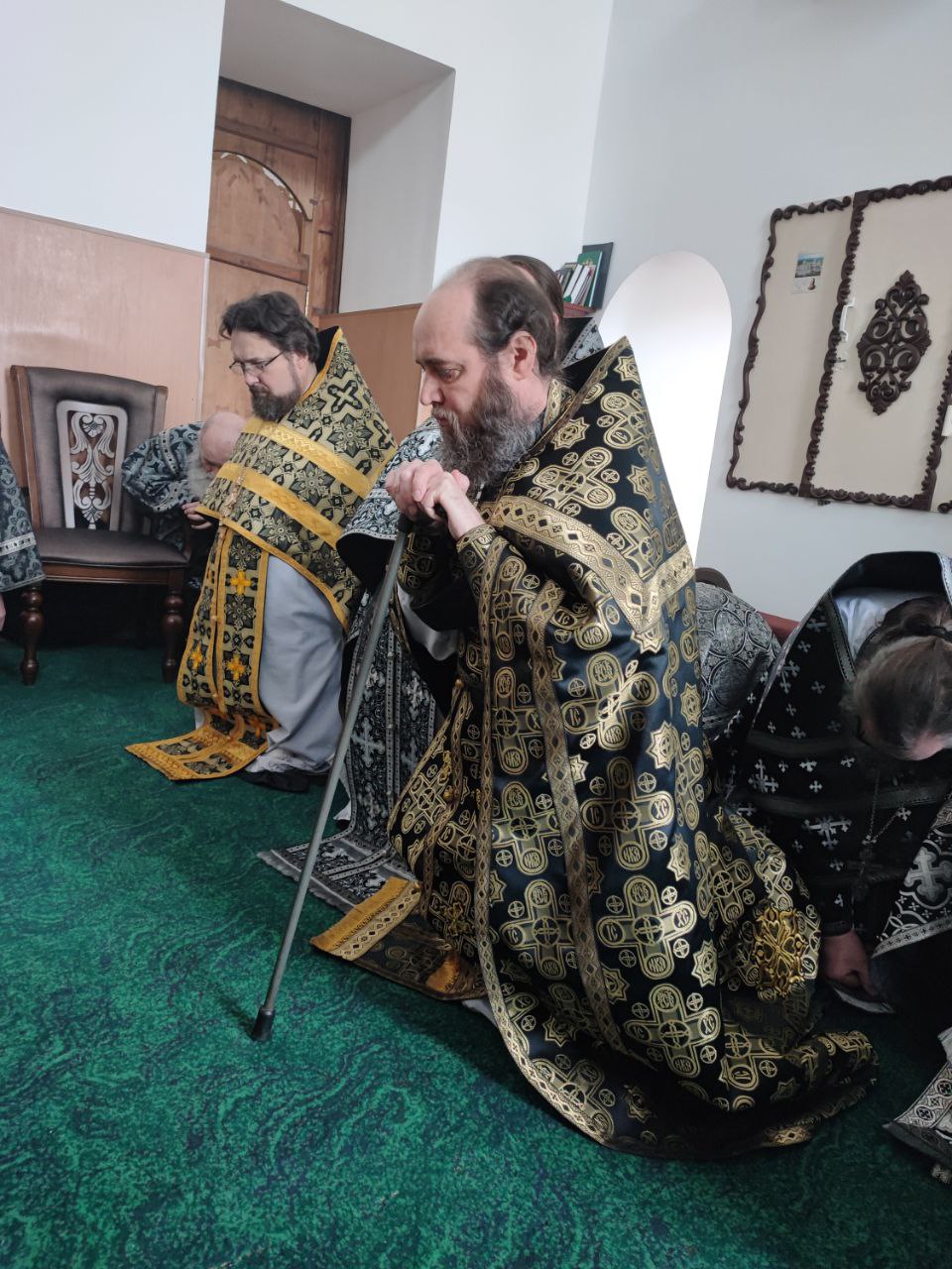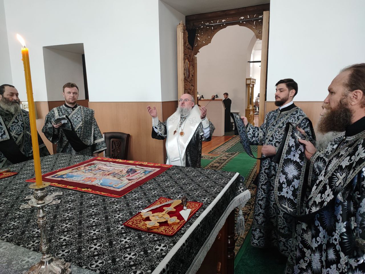 До начала богослужения состоялось традиционное великопостное говение духовенства. Духовники епархии иеромонах Тихон (Клинов) и иеросхимонах Кукша (Никитин) приняли исповедь священнослужителей.