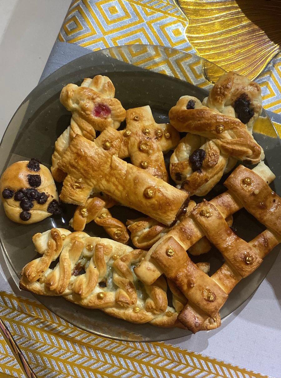 Девочки попробовали изготовить «кресты» по — простому, когда две полоски теста накладываются друг на друга и «кресты» вырезные – это, когда раскатанное тесто вырезают на « крестики» специальной формой или острым приспособлением.