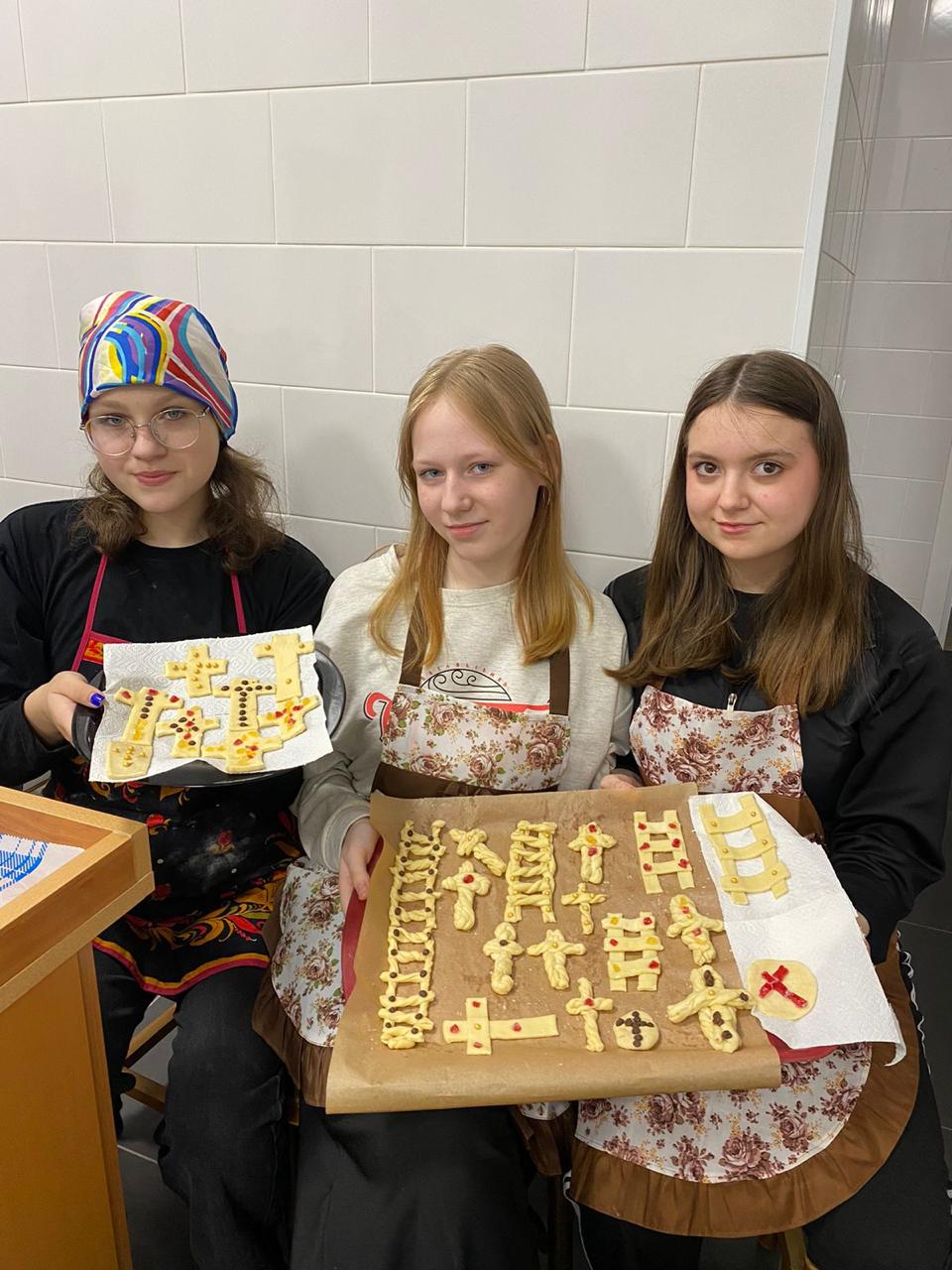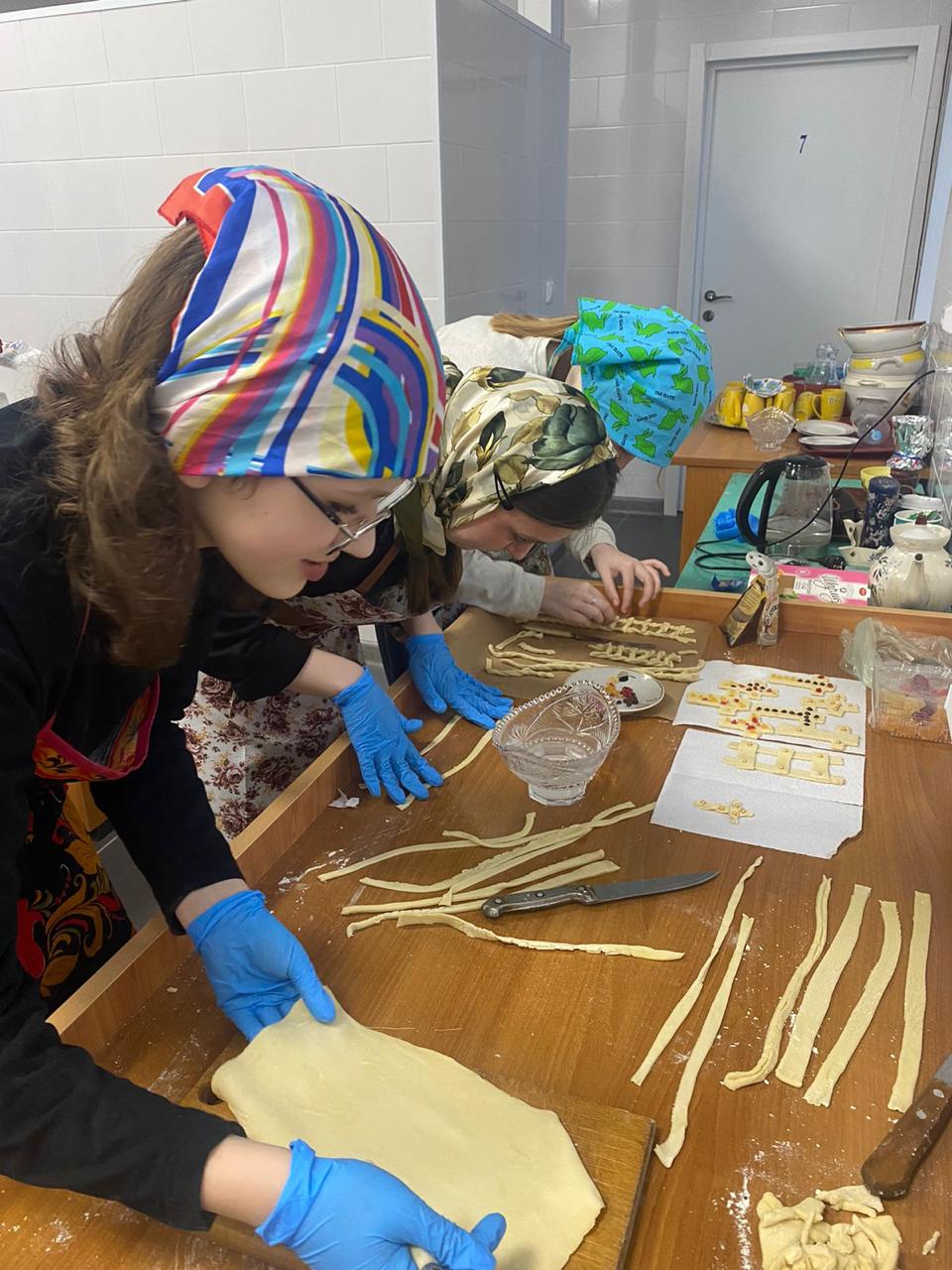 На Крестопоклонной неделе, старшие воспитанницы театрального кружка «Светлячок» при Воскресной школе «Светоч» Казанского собора города Людиново со своим педагогом Ангелиной Виноградовой собрались в трапезной храма для приготовления православной выпечки – «крестов». И это не только чудесная традиция, но и замечательная возможность собраться вместе и обсудить смысл праздника. Прекрасно, что наши юные артисты еще и замечательные кондитеры.