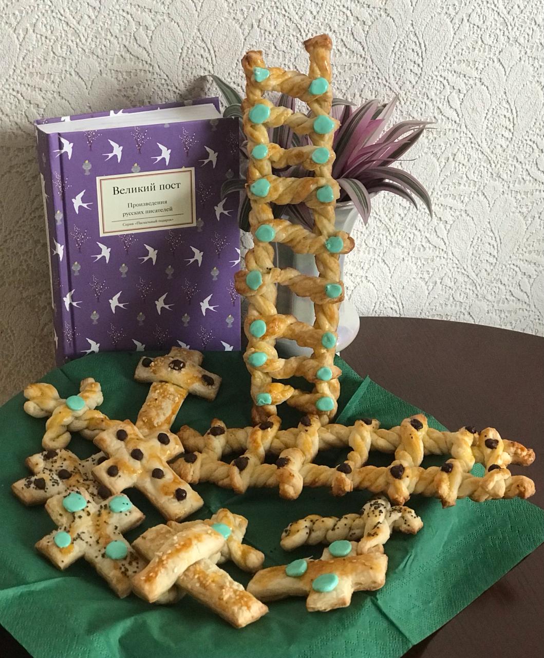 Так же девочки изготовили для будущей недели из теста «лесенки», так как четвёртая неделя Великого поста посвящена преподобному Иоанну Лествичнику.