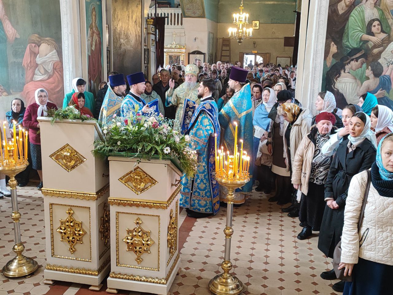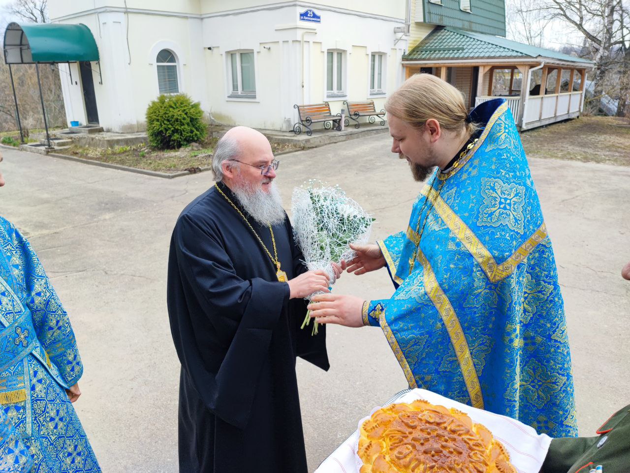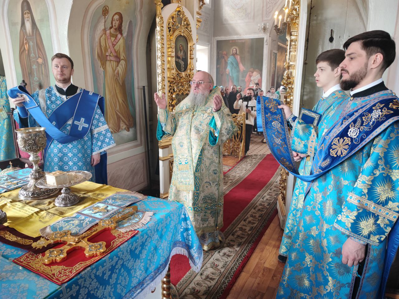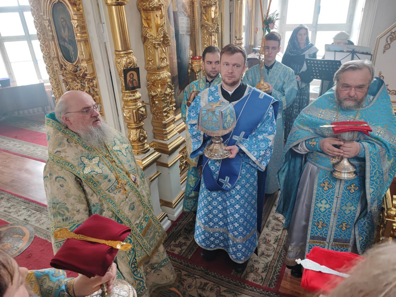 Архипастырю сослужили: протоиерей Павел Морозов, протоиерей Антоний Хатунцев, иерей Сергий Барыкин – настоятель храма, диакон Евгений Ковригин и диакон Евгений Васильев.