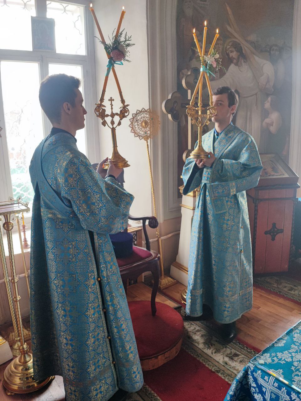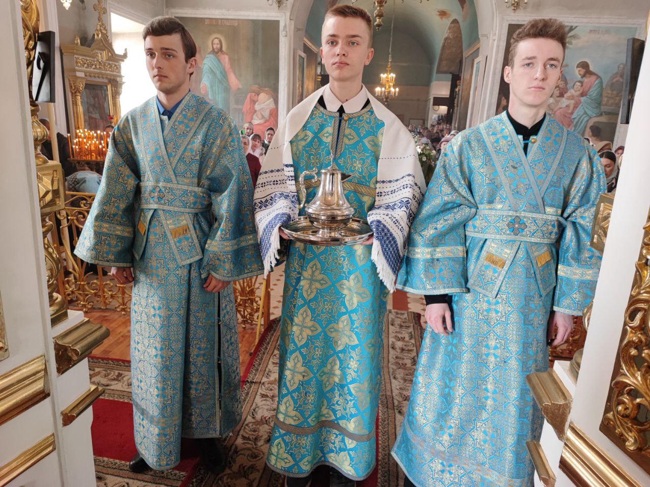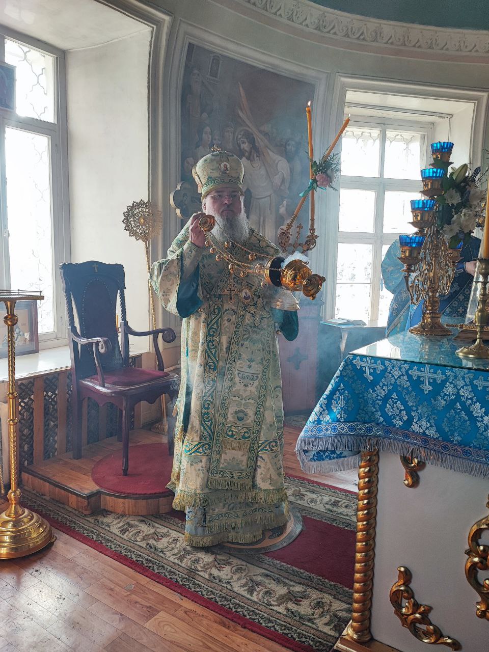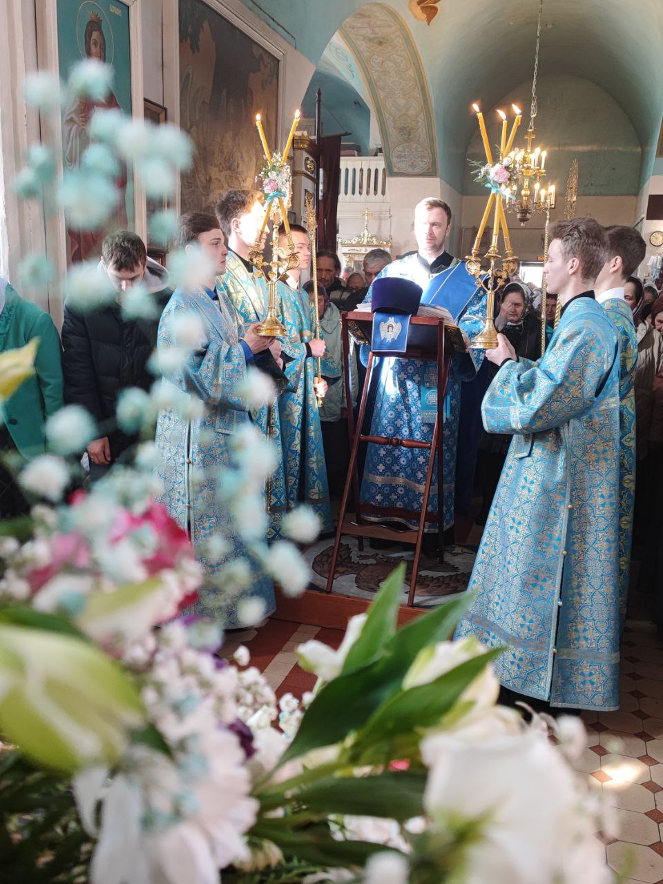 Архипастырю сослужили: протоиерей Павел Морозов, протоиерей Антоний Хатунцев, иерей Сергий Барыкин – настоятель храма, диакон Евгений Ковригин и диакон Евгений Васильев.