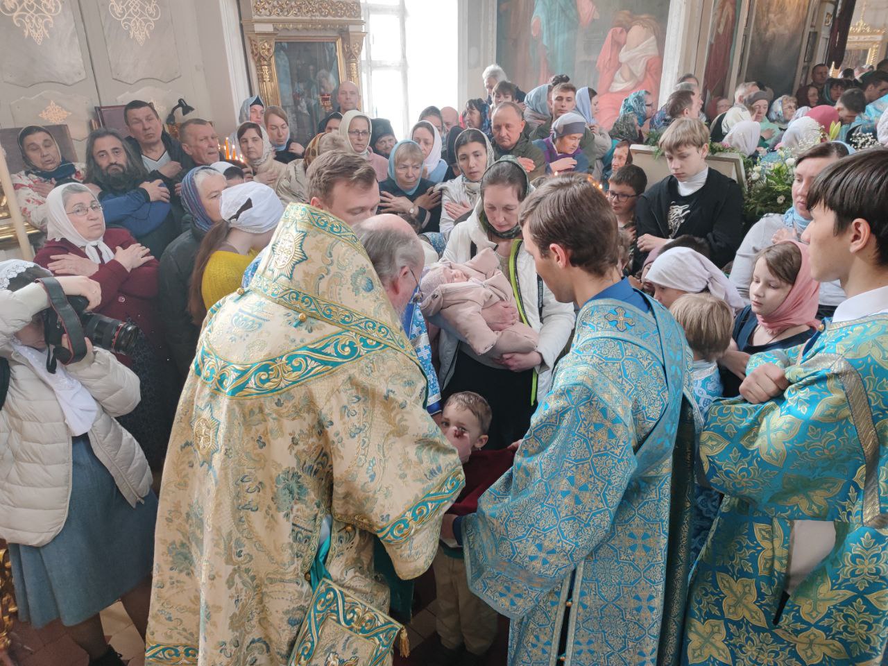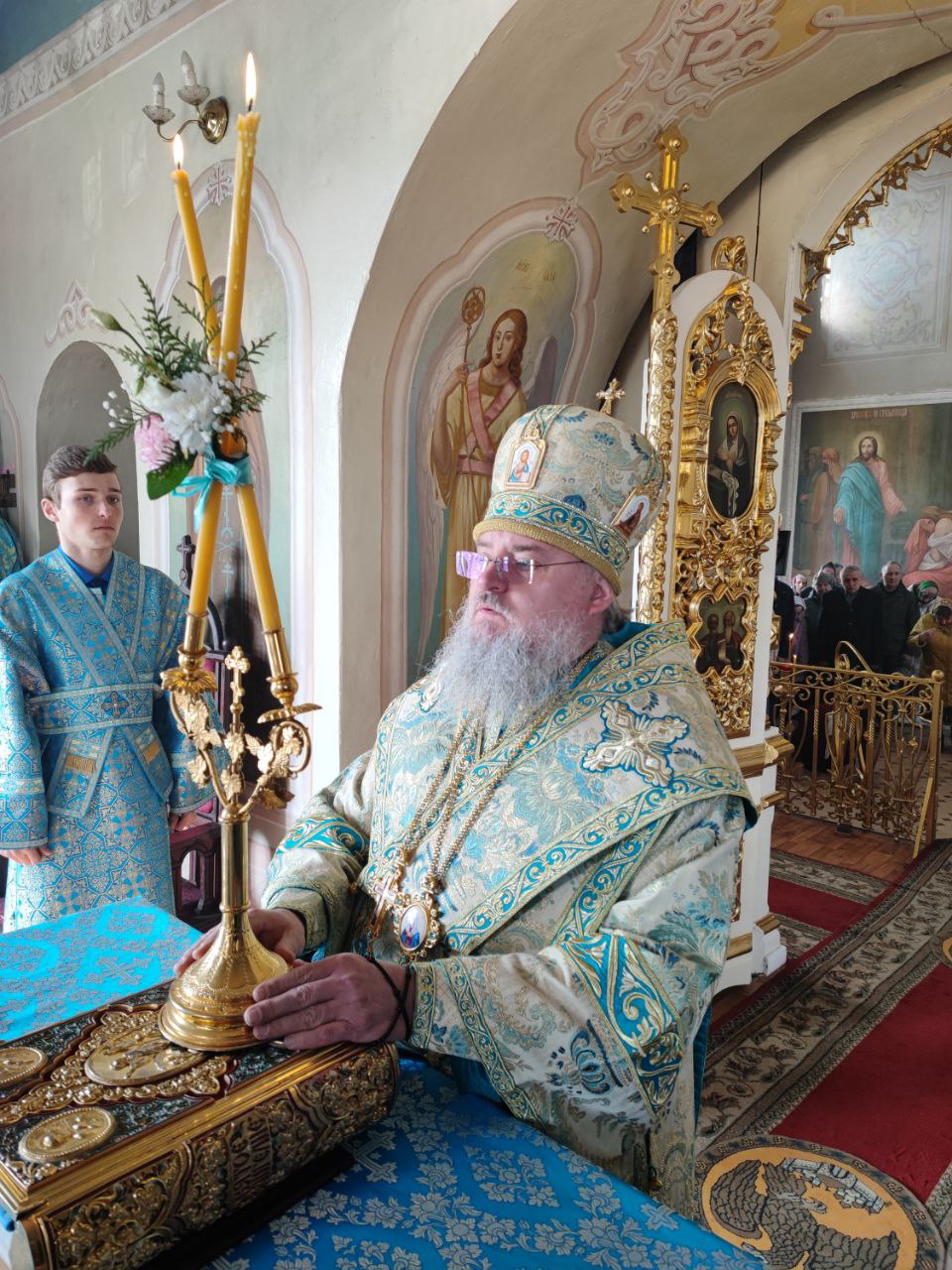 По отпусте литургии священнослужители совершили праздничный молебен и крестный ход вокруг храма, а затем владыка обратился к богомольцам с проповедью.