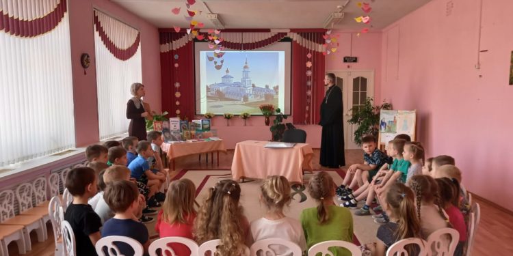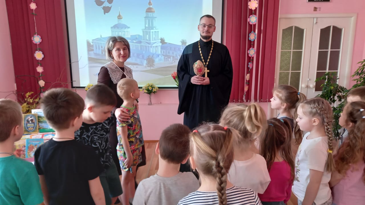 9 апреля 2024 года в рамках муниципальной Декады по основам православной культуры в Муниципальном казённом дошкольном образовательном учреждении Детский сад №12 «Алёнушка» состоялась встреча с клириком Казанского собора города Людиново иереем Алексием Сначевым. Отец Алексий познакомил дошкольников с храмами города Людиново, рассказал о своём детстве, учебе, о пастырском служении. Мероприятие прошло в дружелюбной атмосфере, детям интересно было слушать священника, его рассказы из своей жизни.