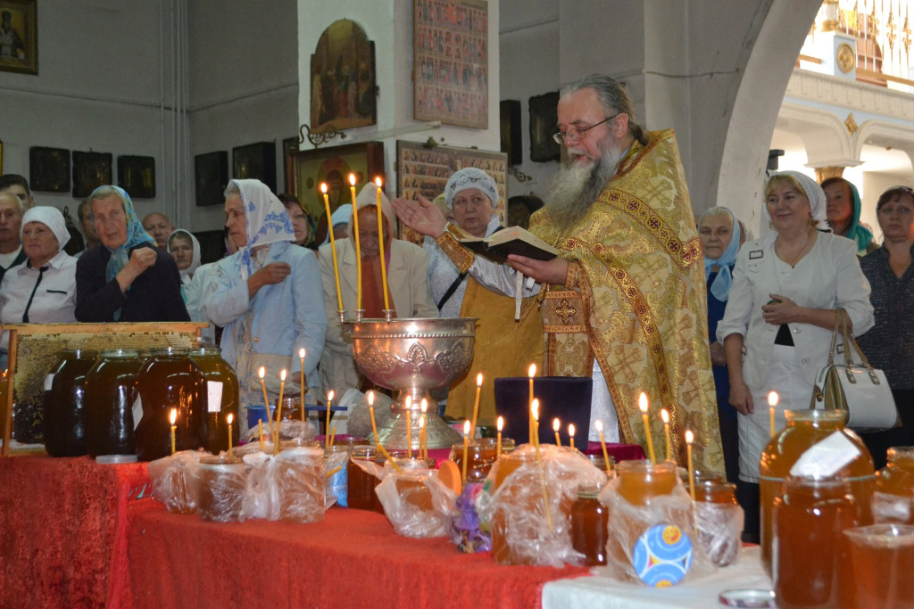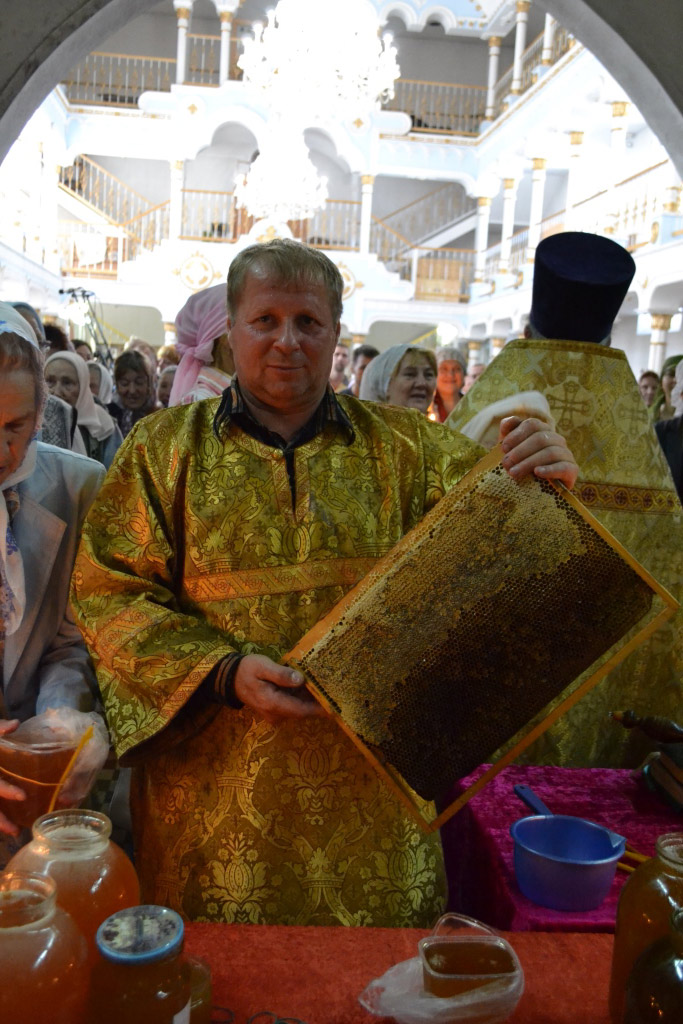 По окончании Божественной литургии, настоятель Казанского собора – протоиерей Алексий Жиганов совершил чин освящения мёда нового урожая по Людиновскому обычаю. В старину, именно в этот день зажинался первый сноп и делался первый срез пчелиных сот.