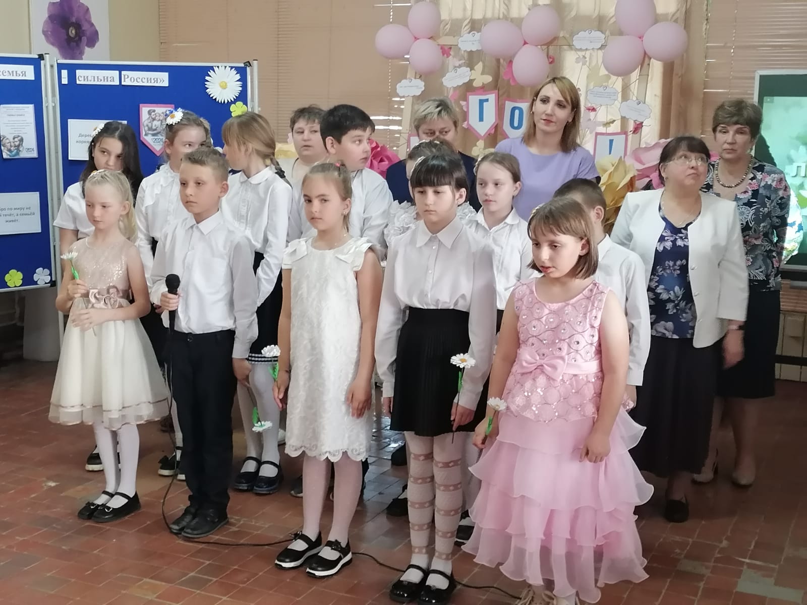 Завершением выступления стала песня о Петре и Февронии, исполненная детьми и родителями. «И дарите ромашки любимым, знаком верности и чистоты…» звучат последние слова песни и каждый ребёнок дарит маме символ праздника. Трогательно и нежно, поучительно и для детей, и для взрослых.
