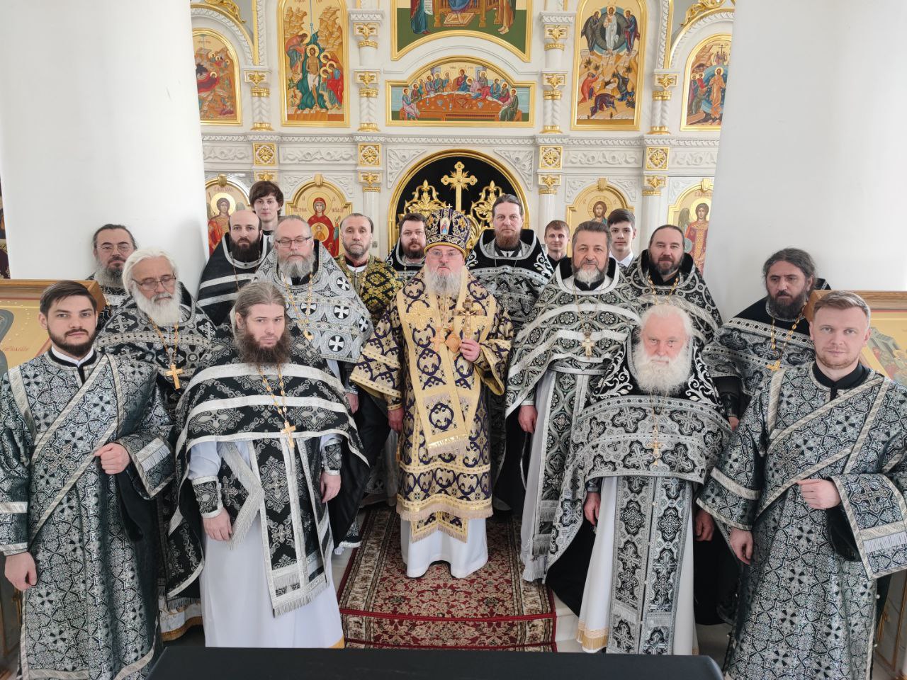 Перед богослужением состоялась великопостная исповедь священнослужителей, которую провели духовник епархии – иеромонах Тихон, а также иеросхимонах Кукша (Никитин).