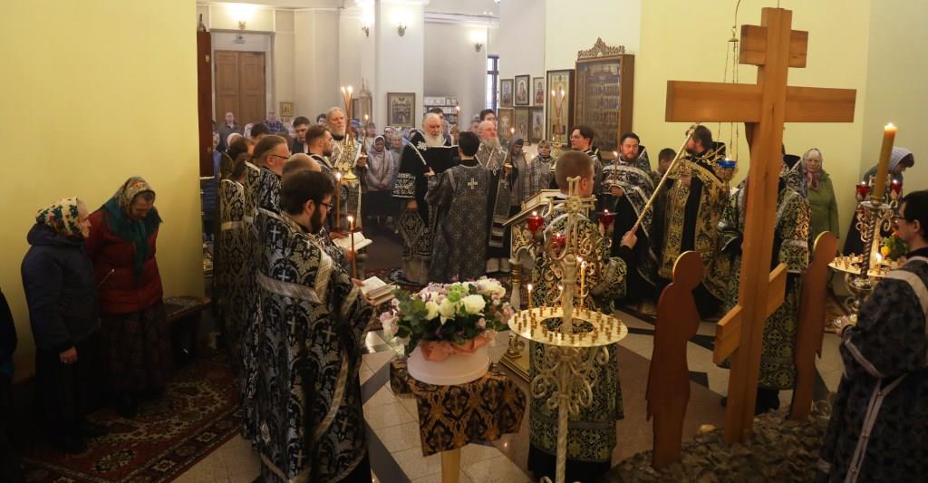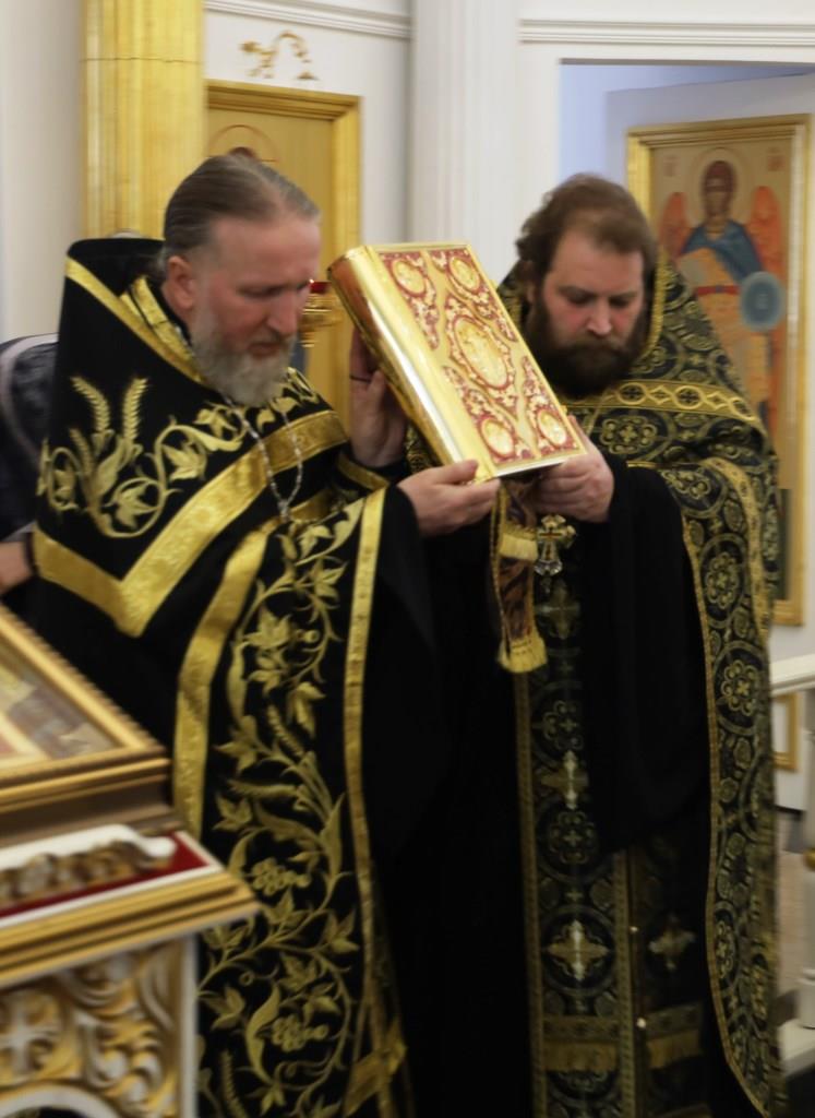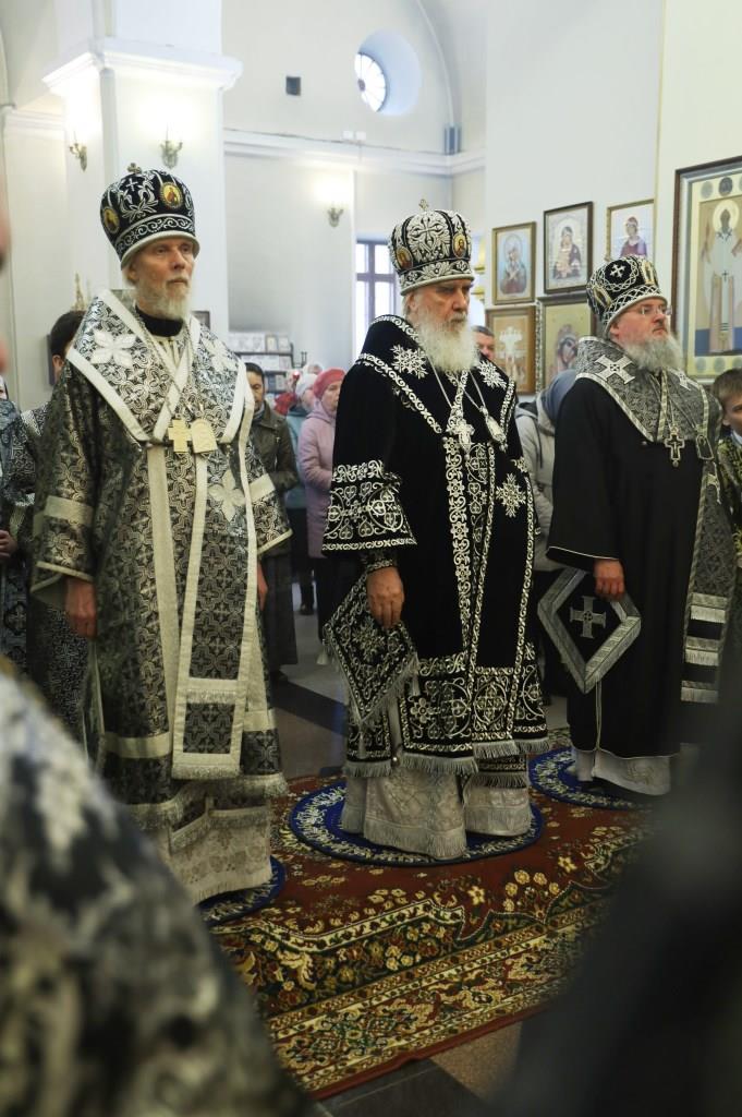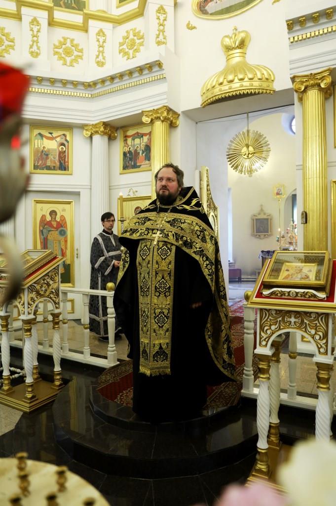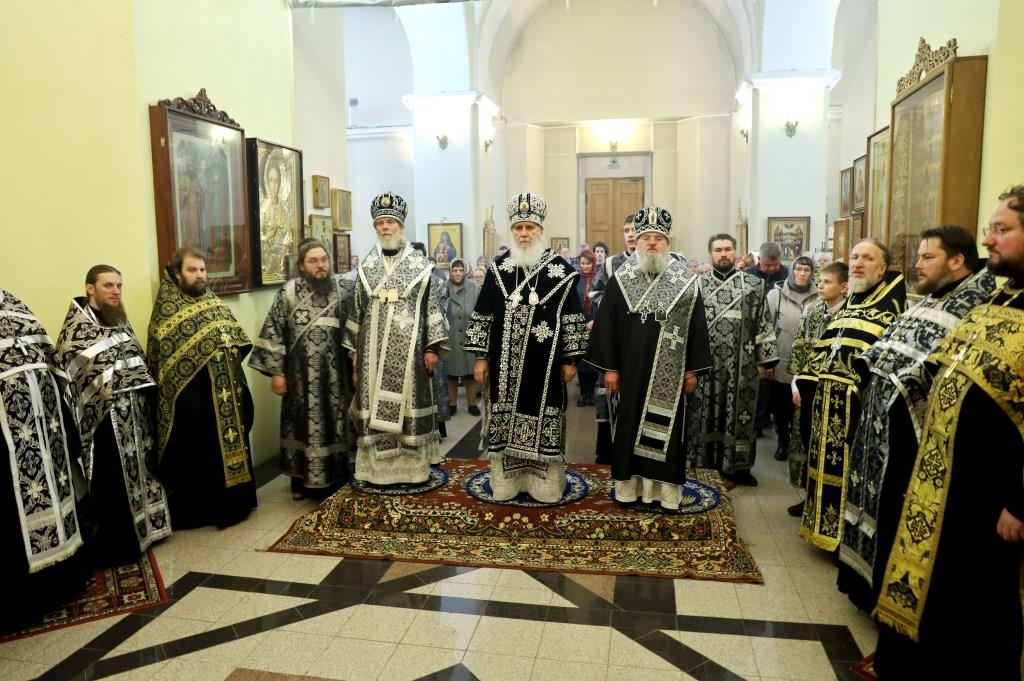 Архипастырям сослужили: протоиерей Алексий Зиновьев,  протоиерей Николай Андрианов,  протоиерей Антоний Хатунцев, иерей Владислав Береговой — настоятель храма, протоиерей Иоанн Бойко, иерей Дионисий Лобанов, иерей Михаил Муллашев, иеромонах Алексий (Щукин), протодиакон Алексий Хамтеев и протодиакон Сергий Комаров.
