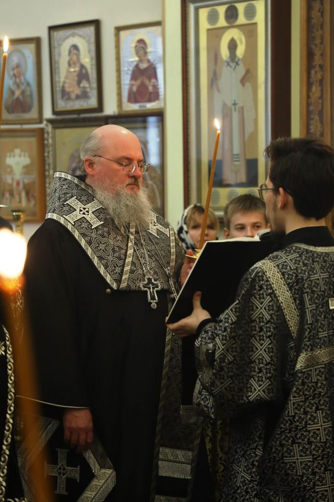 Богослужебные песнопения исполнил хор Калужской духовной семинарии. По окончании вечернего богослужения владыка Климент обратился к прихожанам со словом назидания.