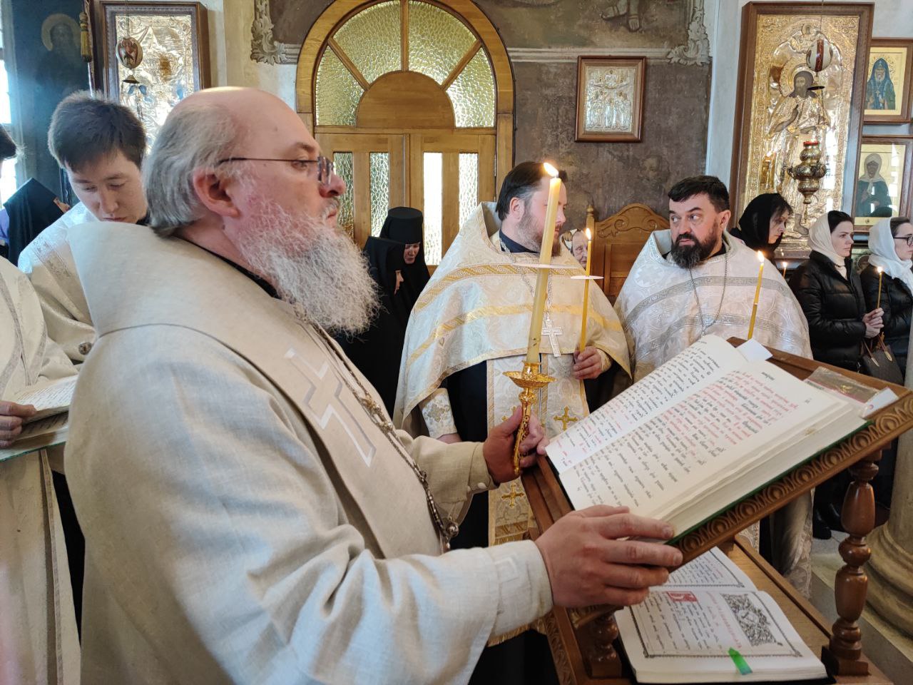 Архипастырю сослужили: иеромонах Афанасий (Серебренников), протоиерей Антоний Хатунцев, иерей Вячеслав Мосуренко, иерей Ярослав Стрельников, иерей Иоанн Галенок, диакон Евгений Ковригин и диакон Евгений Васильев.