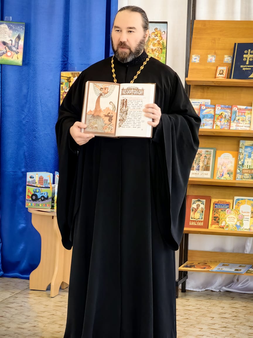 Благочинный Ульяновского округа Козельской епархии протоиерей Максим Садовников, вместе с матушкой Еленой посетили детский сад «Солнышко» в селе Ульяново. Встреча была приурочена к Дню Православной Книги. Работники сада, как всегда встретили радушно и тепло, а улыбающиеся маленькие «СОЛНЫШКИ», своим позитивом заряжали на плодотворную работу. Людмила Сергеевна Антошина, воспитатель подготовительной группы, как ведущая, рассказала любознательным малышам о разных книгах, отец Максим дополнил рассказ о православных книгах, молитвословах, о том, какая первая книга была напечатана и наши детки, даже смогли посмотреть, что же эта за книга такая… В конце встречи была презентована Книга-Книг… БИБЛИЯ. Батюшка вкратце рассказал о чем эта книга, почему она важна каждому из нас, а матушка Елена дополнила рассказ маленькими примерами, адоптированными на возраст слушателей. Эту детскую Библию с красочными иллюстрациями священник передал в дар дошкольному учреждению. Заведующая Бабаянц Мария Владимировна с радостью приняла Книгу, что б воспитатели пользовались Ей для работы, и чтобы детки смогли познакомиться с ней. Взрослые увидели в детях заинтересованность книгами, буквами и конечно книжными картинками, а значит цель достигнута.